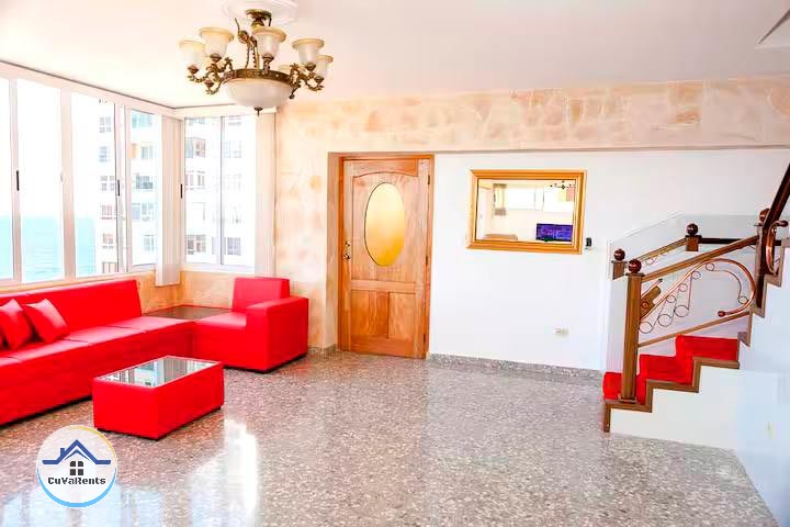 Disfruta de un espectacular apartamento de lujo en el Vedado, La Habana, ubicado en el piso 9 con una increíble vista al mar. La propiedad cuenta con 4 habitaciones, 4 baños y medio, y se renta completa para mayor privacidad. Equipado con cocina moderna, lavadora automática y secadora a vapor, además de 2 elevadores para un acceso cómodo. Ideal para quienes buscan exclusividad y confort en una de las mejores zonas de La Habana. ¡Reserva ahora y vive una experiencia de lujo!