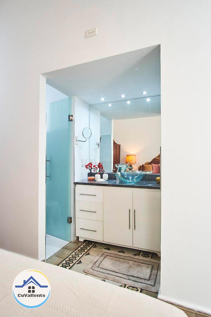 Disfruta de un cómodo apartamento en el Vedado, La Habana, ideal para estancias largas o cortas. Cuenta con sala, cocina y comedor con acceso a un balcón, además de 3 habitaciones climatizadas, cada una con baño independiente, agua fría y caliente, y minibar. También dispone de un baño de servicio, terraza privada con baño y zona de lavado, así como una cocina completamente equipada con refrigerador y fogón a gas. Incluye WiFi y canales de televisión internacionales. ¡Reserva ahora y vive una estancia confortable en el corazón de La Habana!
