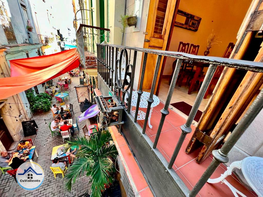 Apartamento en renta en La Habana Vieja con sala-comedor, balcón, cocina equipada, 2 habitaciones y 2 baños. Dispone de Wi-Fi gratuito 24h, aire acondicionado, TV, ventilador de techo, caja fuerte, plancha y secadora de pelo. Ofrece el confort y privacidad en una ubicación privilegiada cerca de los principales atractivos de la ciudad.