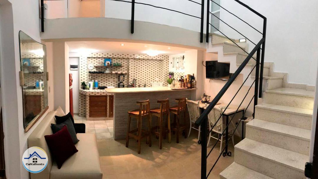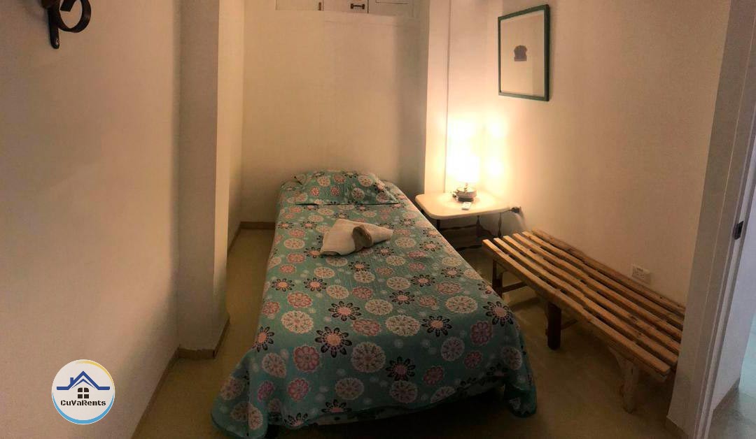 Apartamento interior en renta en La Habana Vieja con 3 habitaciones climatizadas, cada una con baño privado y agua fría y caliente 24h. Capacidad para 5 personas, cocina equipada; TV, teléfono y caja de seguridad en cada habitación. Ofrece servicio de desayuno y lavado, ideal para una estancia cómoda en el corazón de la ciudad.