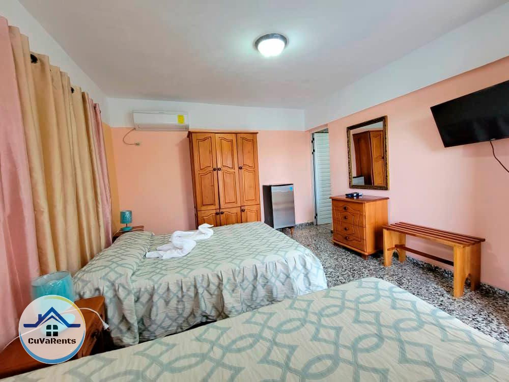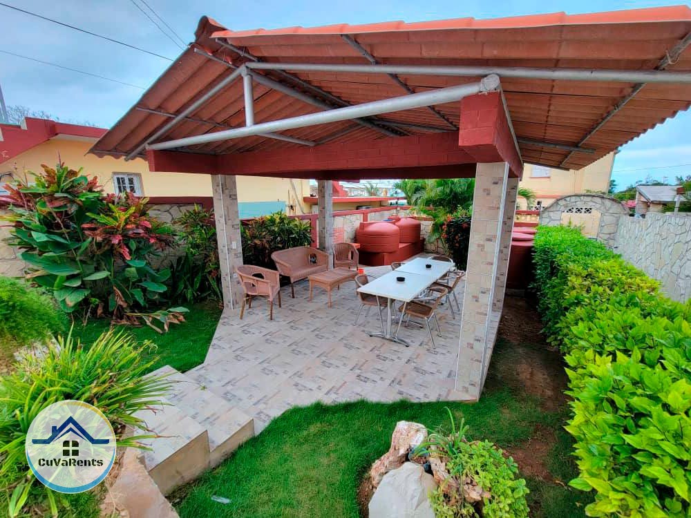 Se renta casa en Boca Ciega, La Habana, con 5 habitaciones equipadas con TV, minibar, caja fuerte y baño privado. En las áreas exteriores, disfruta de una piscina, amplia terraza y ranchón con mesas, perfecto para reuniones al aire libre. Además, cuenta con cocina totalmente equipada y horno para asados. Ideal para una estancia cómoda y privada cerca de la playa.