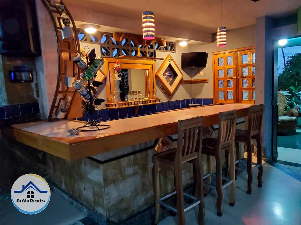 Se renta casa en la playa de Boca Ciega, La Habana, con lujosa piscina, 4 habitaciones con baños privados y conexión WiFi. Disfruta de sala de billar(el uso del billar va con un precio adicional), bar disponible y cocina completamente equipada. Además, cuenta con garaje privado y una ubicación privilegiada a solo 2 calles de la playa. Ideal para una estancia exclusiva con todas las comodidades.