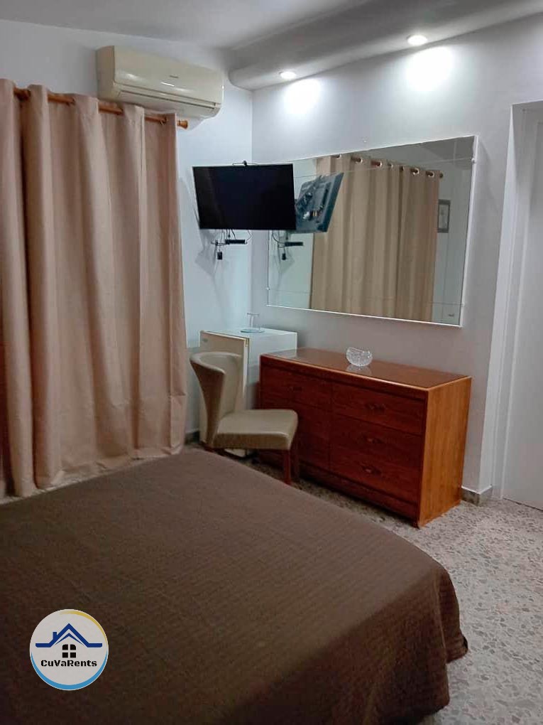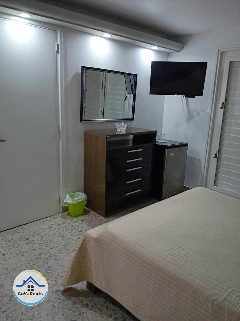 Disfruta de una exclusiva casa en Nuevo Vedado con piscina, ubicada a solo dos calles de la Avenida 26, cerca de restaurantes, centros nocturnos y servicios esenciales. La propiedad cuenta con tres habitaciones climatizadas con camas matrimoniales, TV, caja fuerte y minibar, garantizando el máximo confort e higiene.