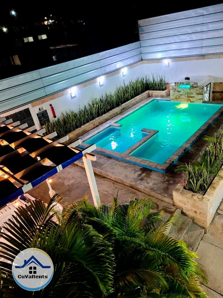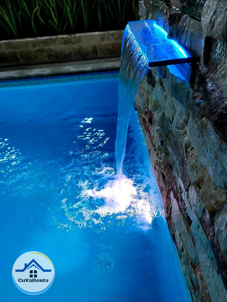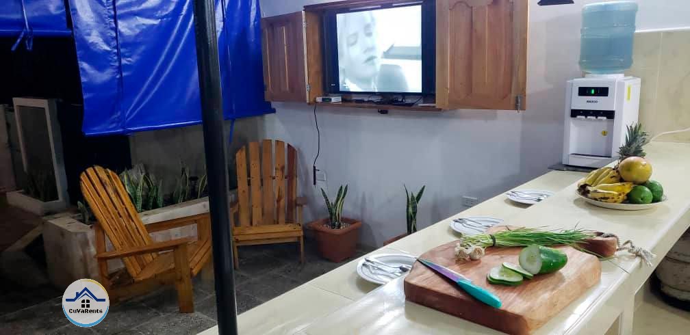 Entre sus comodidades incluye ranchón, horno para carbón, cocina bien equipada, barra de bar, sala de TV, columpio y parqueo para un carro. Además, ofrece servicio de piscinero diario, sistema de videovigilancia 24h y seguridad nocturna.