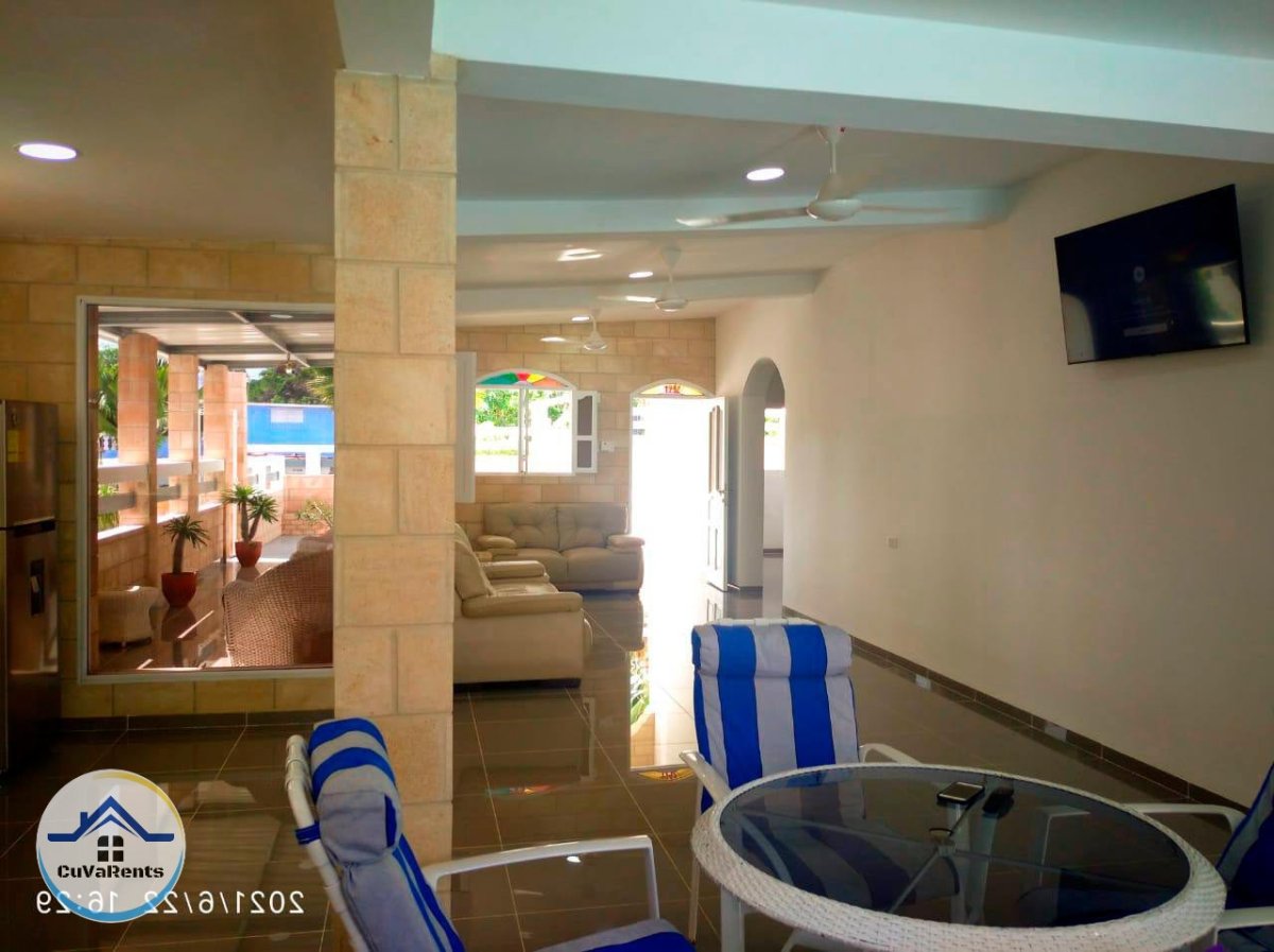 Disfruta de una exclusiva casa de lujo en la playa de Guanabo, La Habana, perfecta para grupos y familias. Cuenta con 6 habitaciones climatizadas y capacidad para 14 personas. Entre sus comodidades destacan una piscina, jacuzzi, terraza, bar, cocina totalmente equipada, juegos de mesa, mesa de billar y planta eléctrica para mayor confort. Ideal para unas vacaciones inolvidables con todas las comodidades. ¡Reserva ahora y vive una experiencia única en Guanabo!