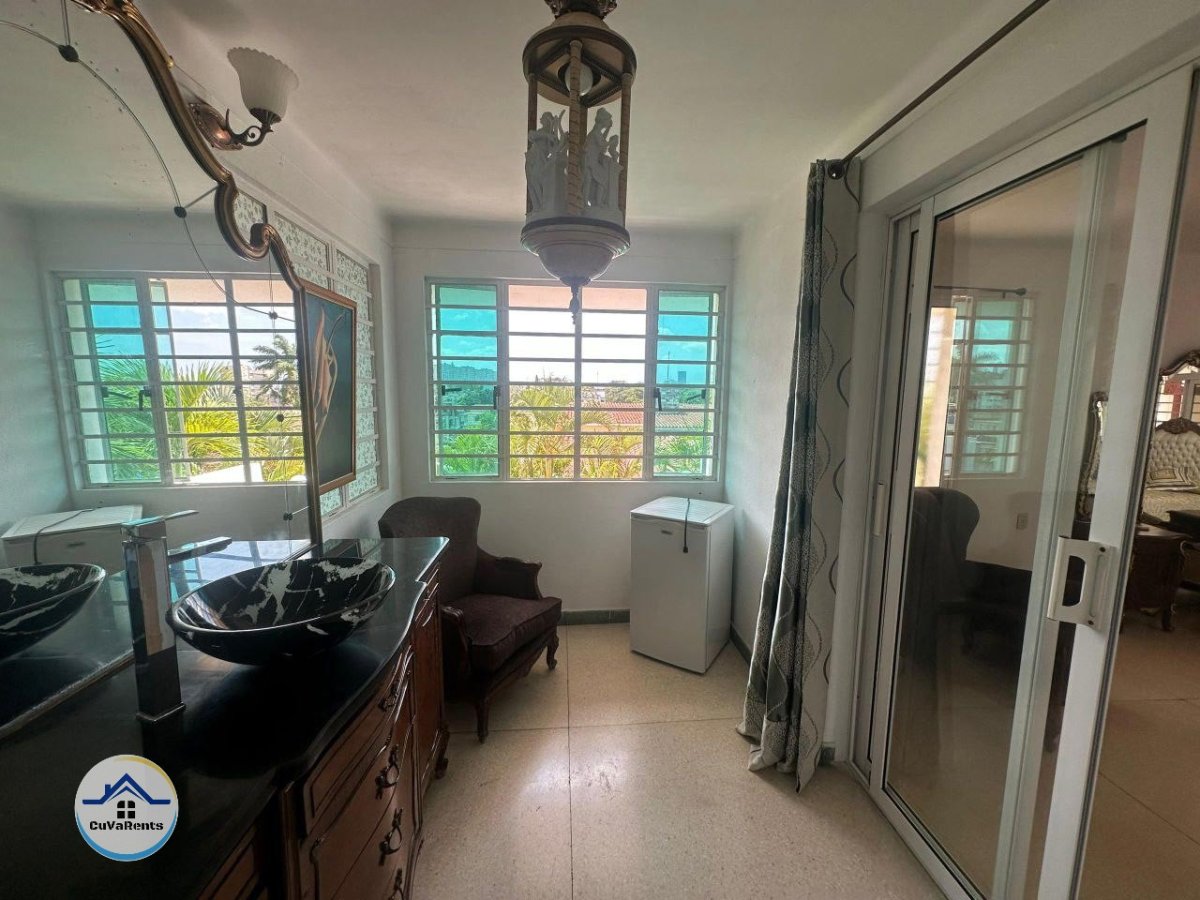 Alquiler de casa de lujo en Nuevo Vedado, La Habana, ideal para quienes buscan exclusividad, confort y ubicación privilegiada. Esta elegante propiedad cuenta con cuatro habitaciones climatizadas, cada una con su baño privado, televisión y minibar. Ofrece terrazas en la planta de dormitorios y un amplio patio con piscina para disfrutar al aire libre. La casa dispone de una cocina totalmente equipada, entrada independiente, parqueo para autos y planta eléctrica, garantizando una estancia cómoda y segura en todo momento. Perfecta para disfrutar de La Habana con estilo y total privacidad.