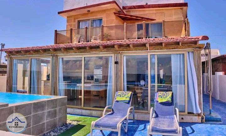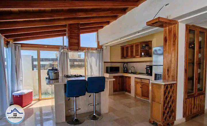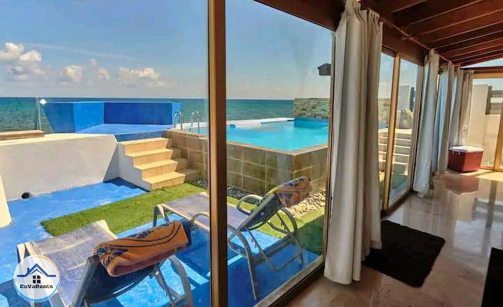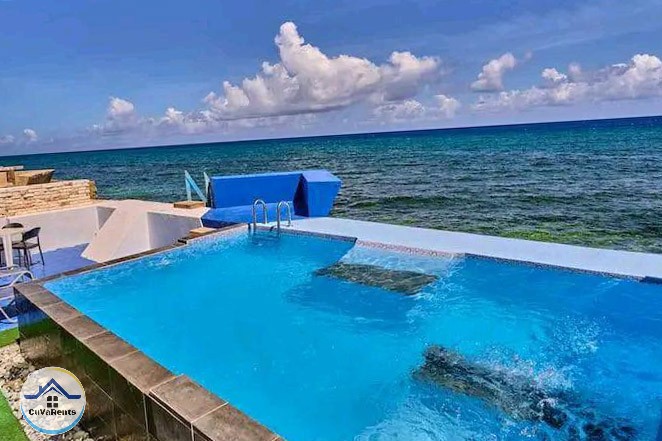 Alquiler de casa de lujo frente al mar en Santa Fé, La Habana, perfecta para quienes buscan una experiencia única junto al mar. Esta exclusiva propiedad de cuatro dormitorios climatizados, cada uno con baño privado, más un baño adicional en la sala de estar, ofrece espacios cuidadosamente diseñados para el máximo confort. Dispone de cocina totalmente equipada, dos terrazas —una en el tercer piso con tres pérgolas y barra, y otra con jacuzzi y vistas al mar— y en la planta baja cuenta con piscina y dos tumbonas, además de una escalera de acceso directo a la playa y un grill de gas para asados al atardecer. Como servicios opcionales, ponemos a tu disposición chef y bartender privados para que tu estancia sea aún más inolvidable.
