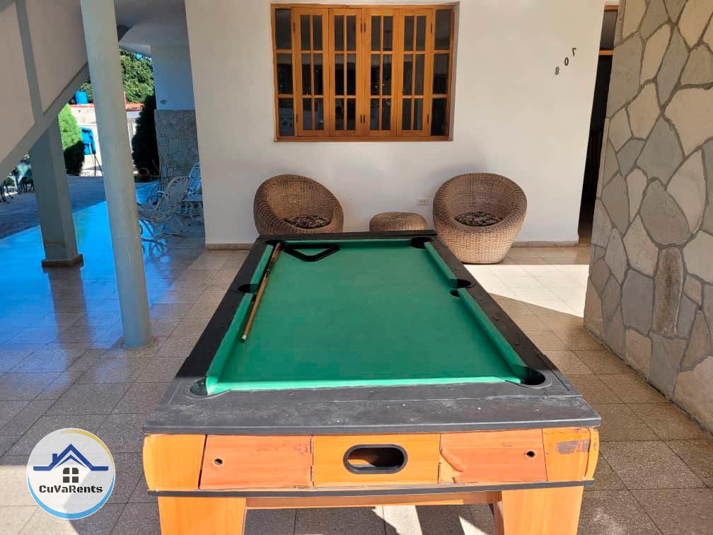 Renta una espectacular casa en la playa de Boca Ciega, La Habana, ideal para grupos y familias. Disfruta de su amplia terraza, piscina, patio y horno al carbón. La casa cuenta con 8 habitaciones equipadas con TV, minibar, caja fuerte y baño privado. Además, dispone de una cocina totalmente equipada y mesa de billar para el entretenimiento.