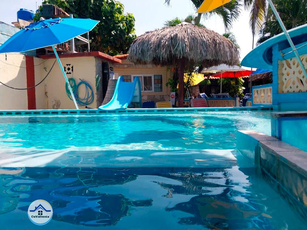 Alquiler de casa en la playa de Guanabo, La Habana, ideal para grupos grandes que buscan comodidad cerca del mar. La propiedad dispone de cinco habitaciones climatizadas con televisión, con capacidad para alojar hasta 15 personas. Ofrece una refrescante piscina, terraza con tumbonas para relajarse, y una cocina totalmente equipada para mayor autonomía durante la estancia. Además, cuenta con planta eléctrica para garantizar el confort en todo momento. Ubicada a solo 100 metros de la playa, esta casa es perfecta para disfrutar de unas vacaciones inolvidables en un ambiente tranquilo y exclusivo.