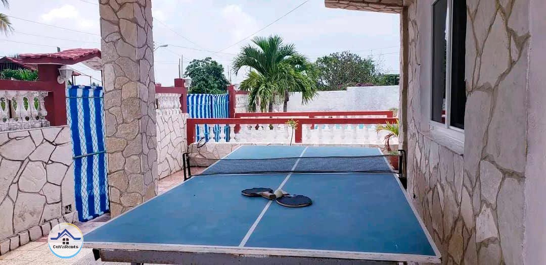 Renta una espaciosa casa en la playa de Guanabo, La Habana, ideal para familias y grupos. Cuenta con 5 habitaciones, 4 baños, piscina con recirculación, cocina totalmente equipada, 2 refrigeradores, 1 nevera, barbacoa, mesa de ping-pong y estacionamiento para 3 autos. A solo pasos del mar, con capacidad para 15 personas. ¡Disfruta de una estancia cómoda y relajante en la mejor zona de playa!
