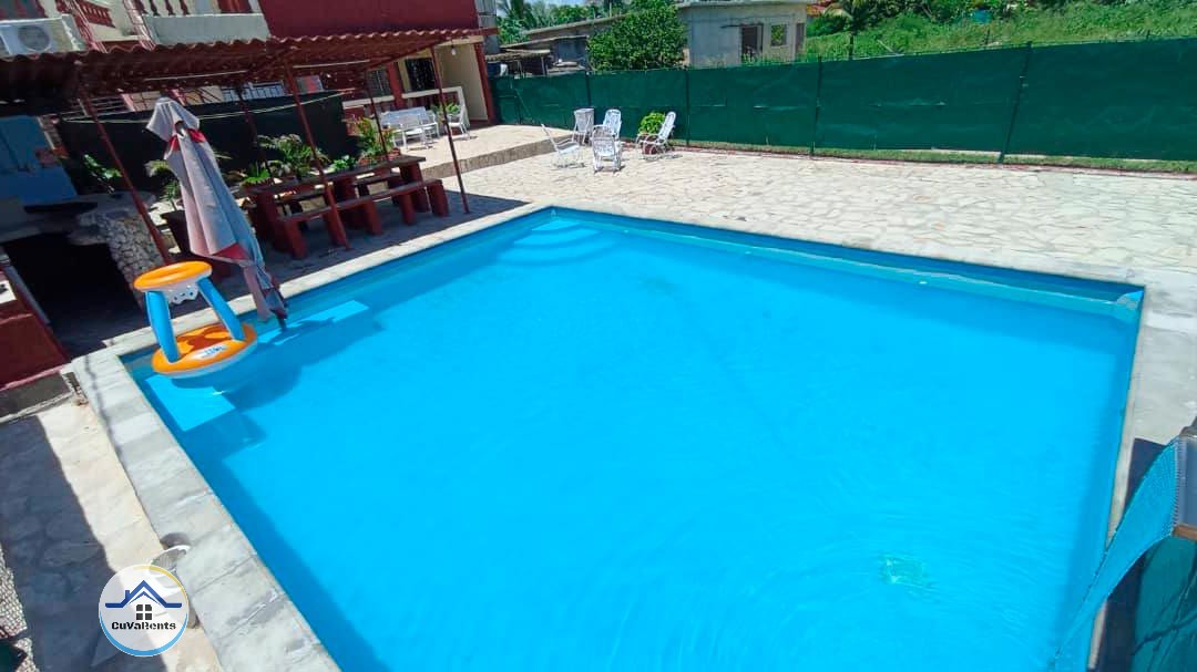 Disfruta de unas vacaciones inolvidables en esta espaciosa casa en la playa de Guanabo, La Habana. Ubicada a solo 1 cuadra del mar, ofrece 5 habitaciones, 4 baños (más 1 en la piscina), piscina privada, terraza y garaje para 3 autos. Equipada con agua fría y caliente en las duchas, horno al carbón y servicio de custodia para mayor seguridad. ¡Reserva ahora!