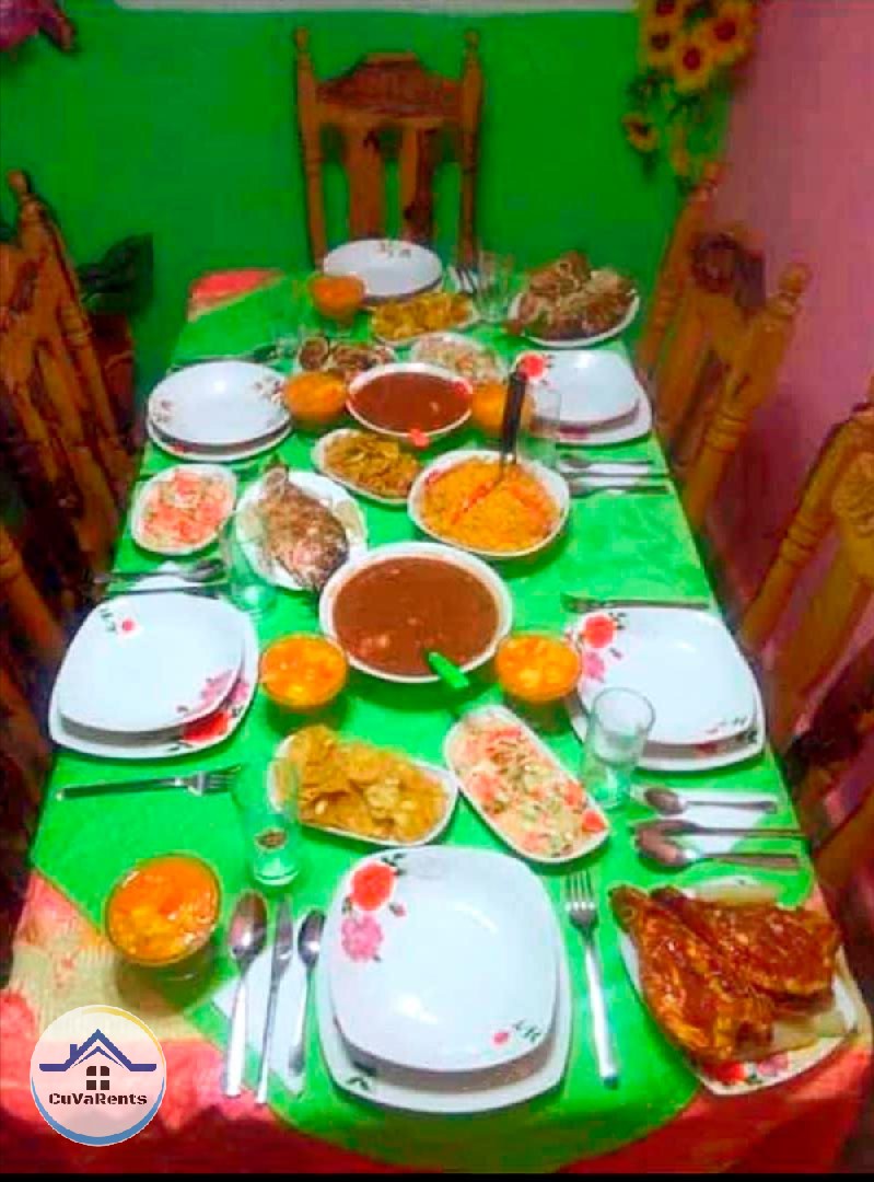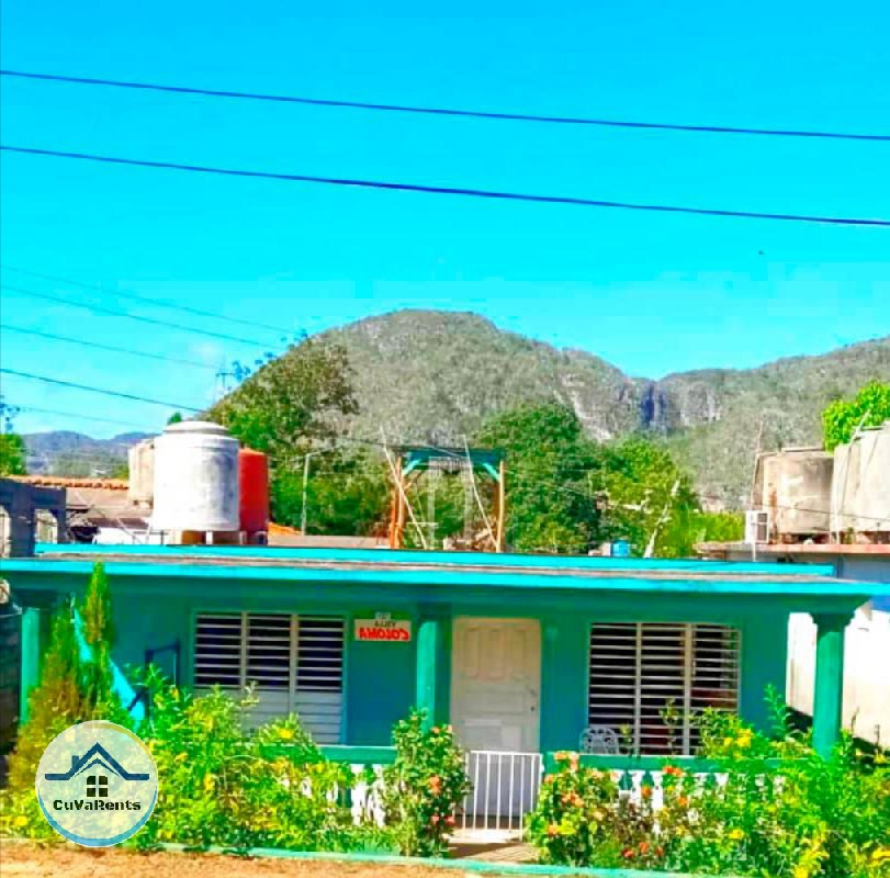 Alquiler de casa en Viñales, Pinar del Río. Ubicada en un barrio tranquilo, a solo cinco minutos del centro del pueblo, esta casa cuenta con dos habitaciones independientes, climatizadas, con baño privado, minibar y terraza con vista a las montañas. Se ofrecen desayunos, almuerzos y cenas, así como excursiones a caballo, en bicicleta, caminatas y tours a sitios como la Cueva del Indio, el Mural de la Prehistoria y playas cercanas. También se organizan experiencias culturales como clases de baile, visitas a vegas de tabaco y degustación de café y ron artesanal. Ideal para quienes buscan naturaleza, tranquilidad y cultura local.