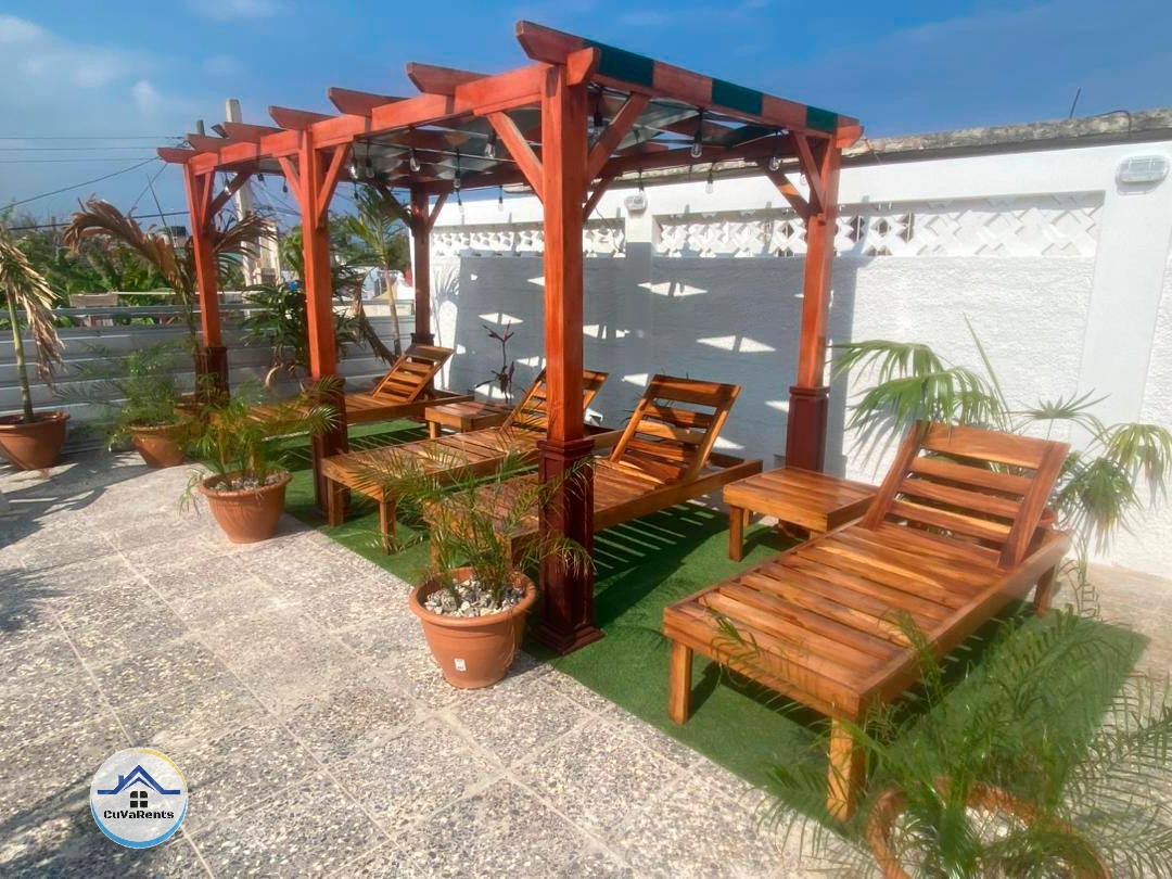 Disfruta de una casa independiente a solo 200 metros de la playa de Guanabo, La Habana, ideal para familias y grupos. Cuenta con 4 habitaciones con capacidad para 8 adultos y 3 niños. Entre sus comodidades destacan una piscina con jacuzzi y calefacción, terraza con pérgola y tumbonas, además de un grill a gas y otro al carbón para disfrutar al aire libre. ¡Reserva ahora y vive una experiencia inolvidable en Guanabo!