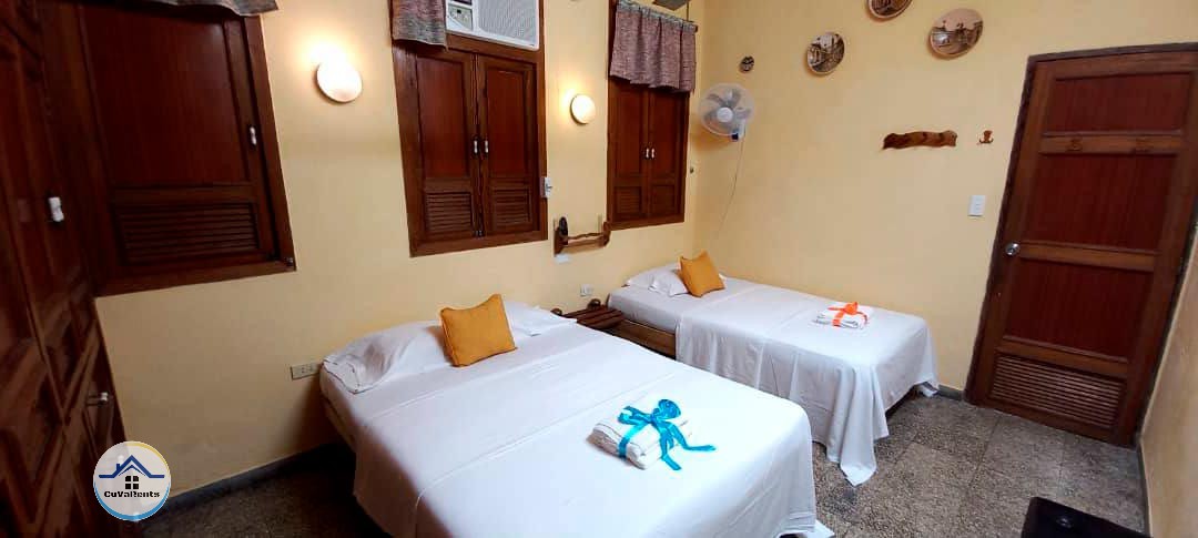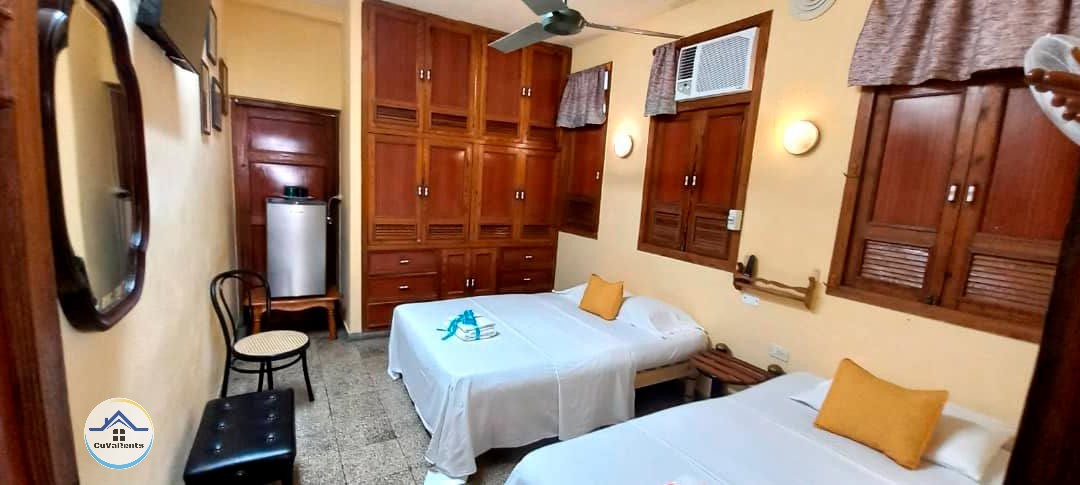 Habitación independiente con baño privado, equipada con una cama matrimonial y una cama 3/4, ideal para hasta 3 personas. Ubicada en el corazón de Centro Habana, cerca de los principales atractivos turísticos de la ciudad.