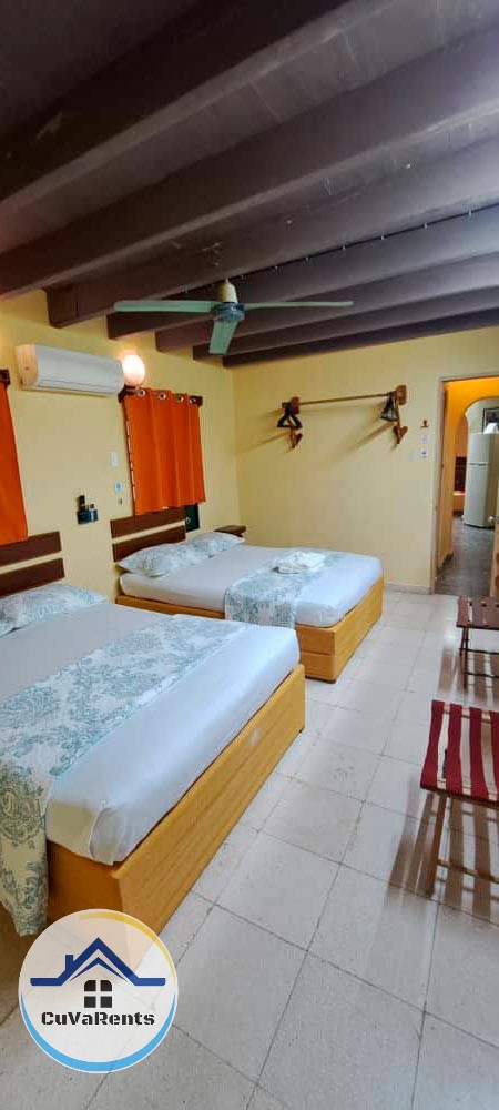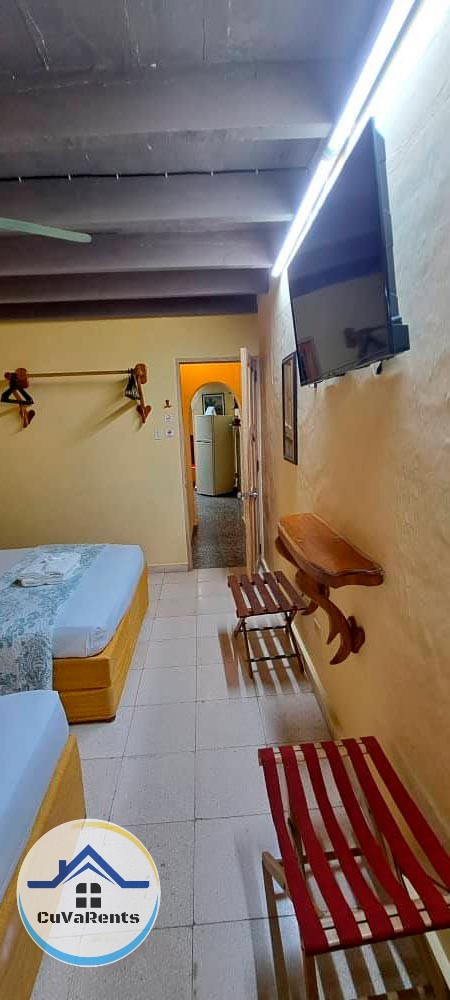 Amplia habitación independiente, equipada con dos camas matrimoniales, caja fuerte, TV por cable de 43” y ventilador de techo. Cuenta con baño privado, salón exclusivo y cocina totalmente equipada. Ubicada en una zona céntrica, ideal para disfrutar de La Habana.