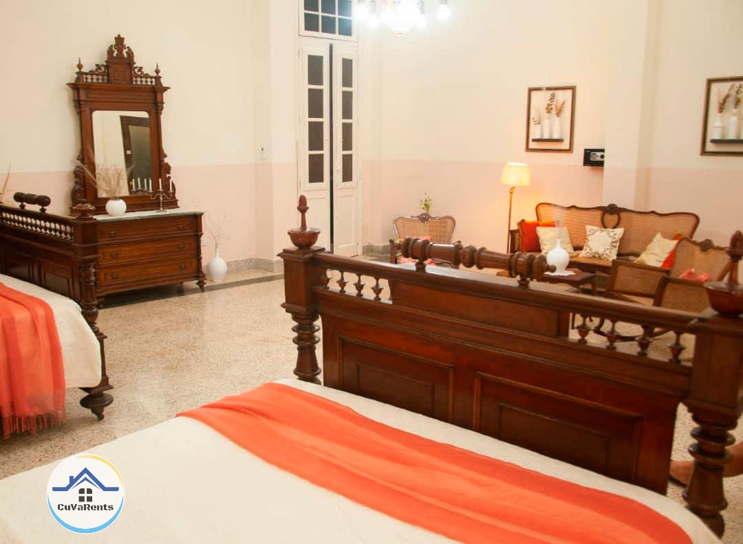 • Habitación Colonial: 2 camas Queen, capacidad para 4 personas.