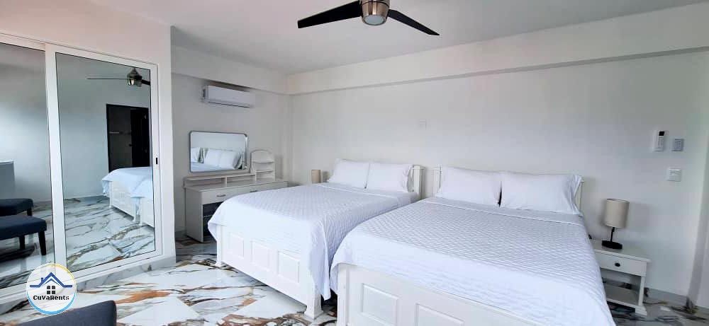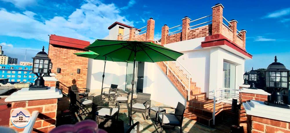 Disfruta de un exclusivo penthouse de lujo en el Vedado, La Habana, ubicado en el piso 8 con impresionantes vistas al mar y la ciudad. Cuenta con 3 habitaciones, cada una con baño privado, split, caja fuerte, clóset, Smart TV de 55”, minibar y capacidad para 10 personas con 5 cómodas camas (4 Queen y 1 King size).