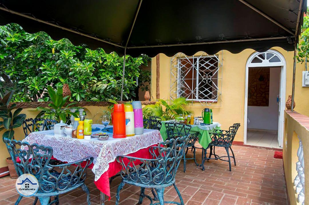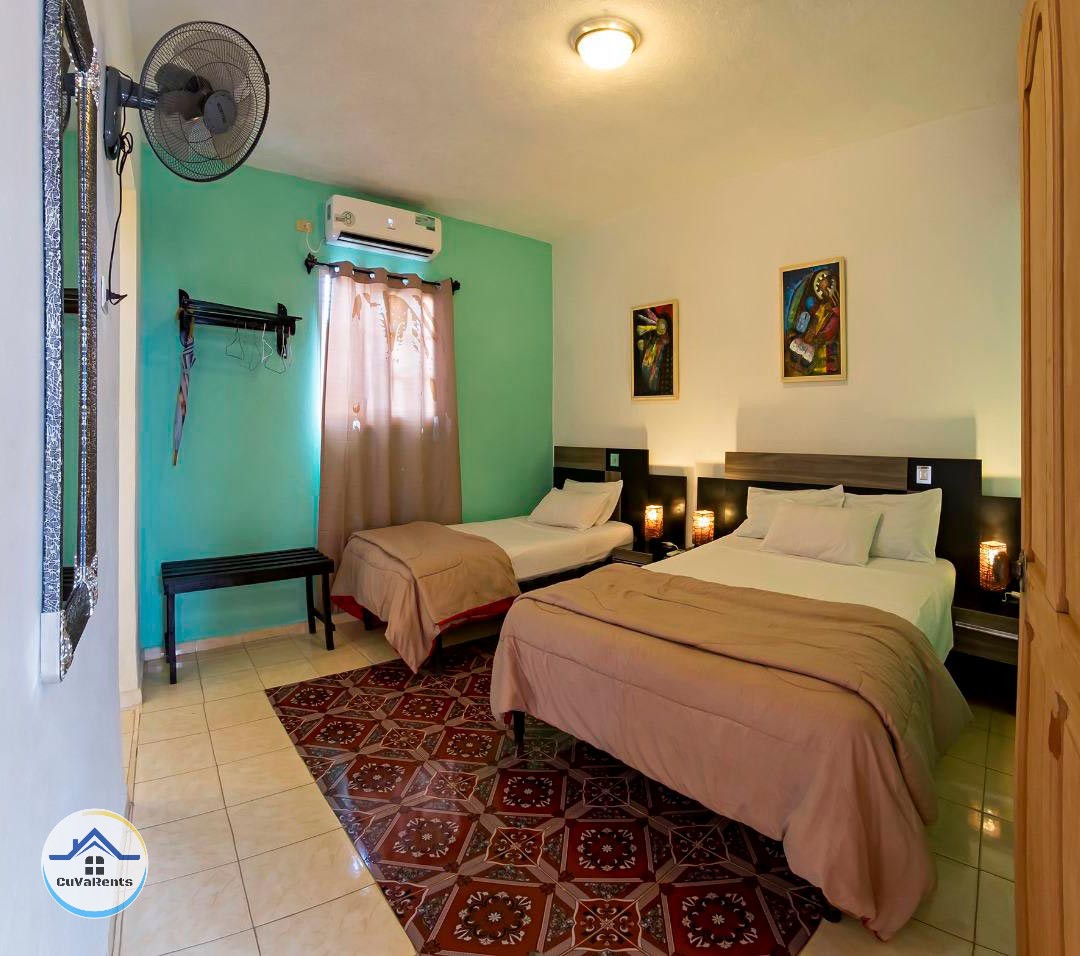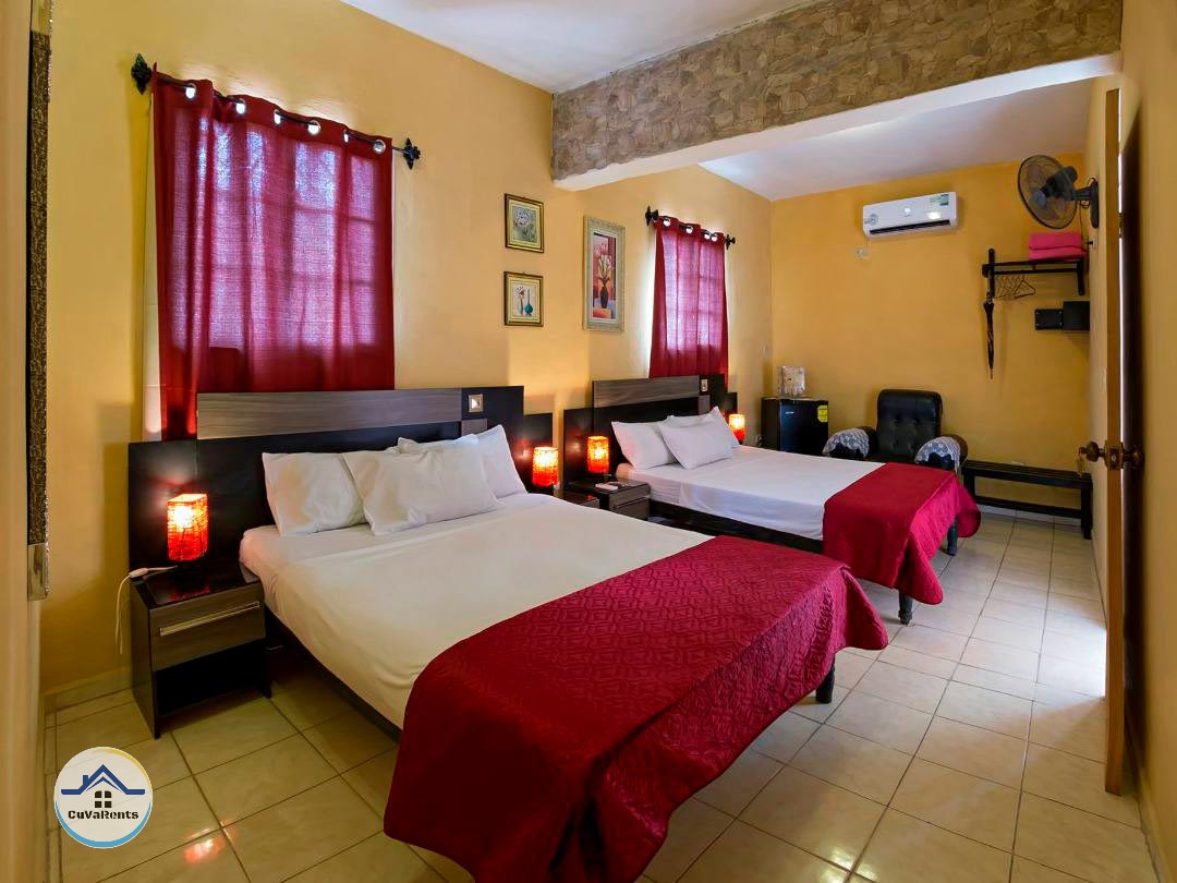 Las habitaciones están situadas en el segundo piso, con acceso directo a una terraza que ofrece vistas al barrio, en una zona céntrica y muy segura. La casa cuenta con planta eléctrica para asegurar energía en todo momento. Se ofrecen desayunos y cenas caseras, así como actividades culturales y de ocio organizadas por la familia anfitriona, brindando una experiencia auténtica en una de las ciudades más bellas de Cuba.