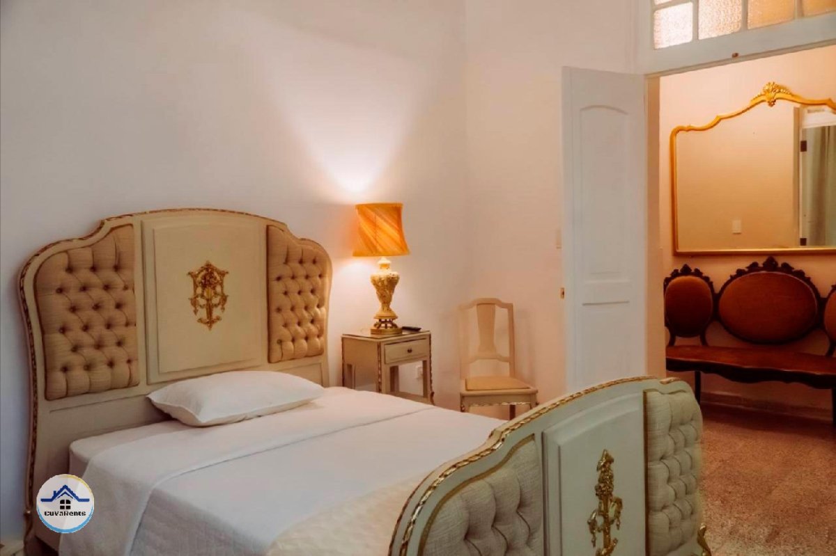 Alquiler lineal de Casa Vintage en Playa, La Habana, Cuba, una propiedad remodelada recientemente con 500 m² que ofrece 5 habitaciones amplias, cada una con baño privado y equipadas con TV, caja fuerte y clóset, además de garaje, jardín, portal, sala, recibidor, despacho, comedor, cocina totalmente equipada, patio techado, cuarto de lavado con lavadora y secadora, baño de servicio, WiFi, cámaras de seguridad y planta eléctrica para toda la casa, ideal para estadías cómodas y seguras en una zona privilegiada.
