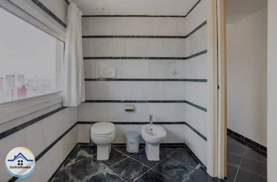Apartamento completamente climatizado, que incluye una terraza con piscina y tumbonas, desde donde se pueden disfrutar vistas impresionantes de la ciudad; cuenta con cuatro dormitorios, cada uno con baño privado. Para garantizar una experiencia excepcional, se ofrece servicios de gastronomía, desayuno y conexión a Internet Wi-Fi.
