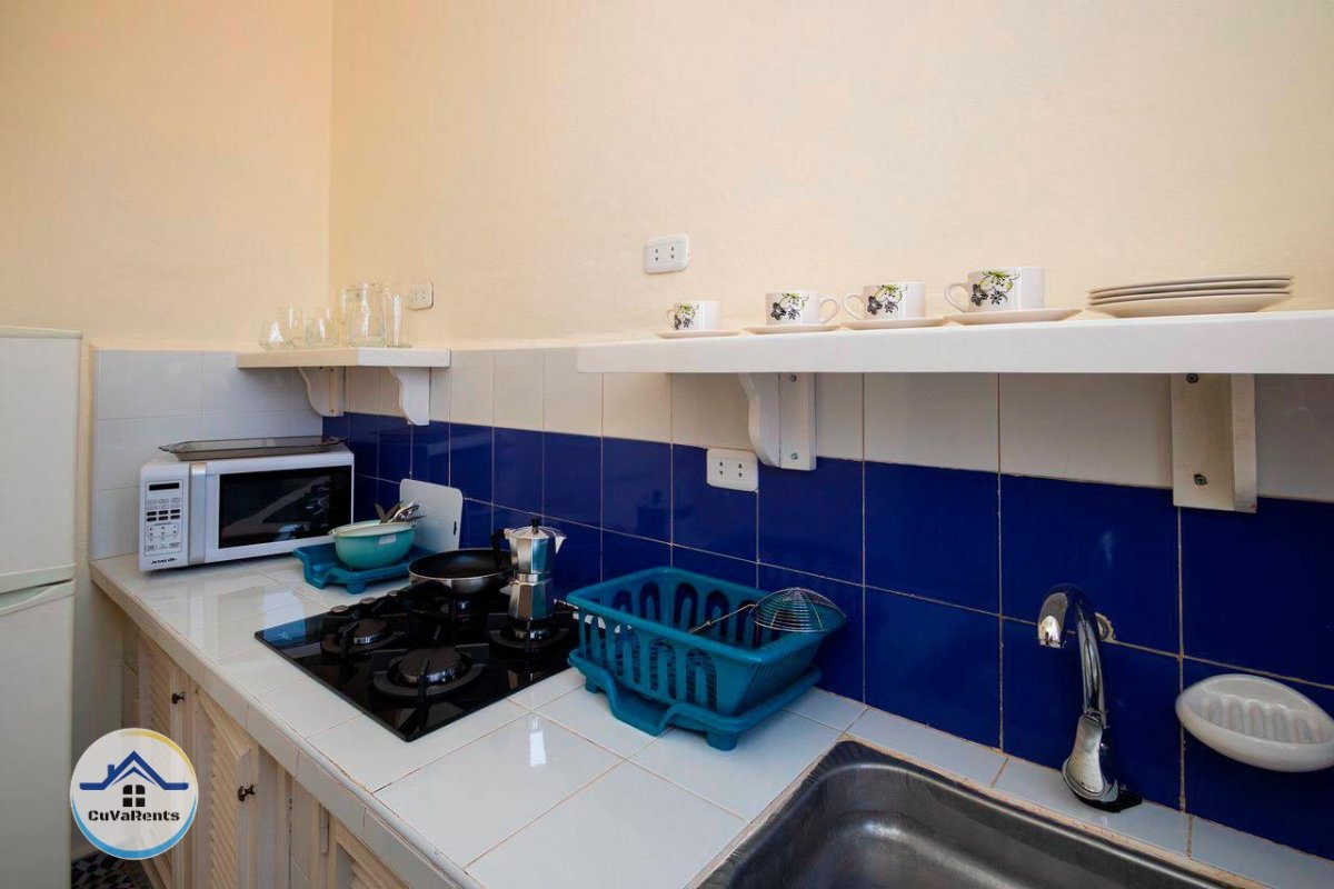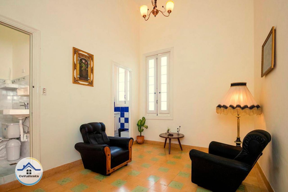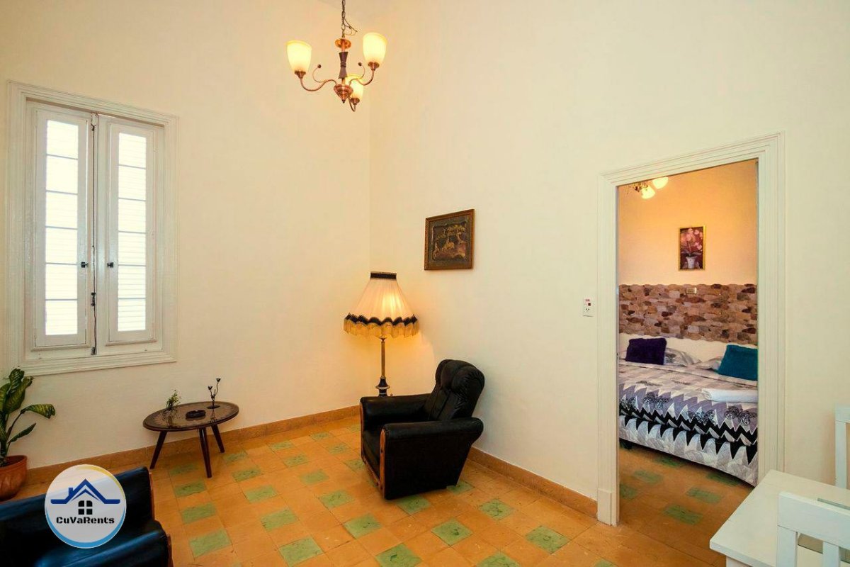 Apartamento compuesto de Sala, cuarto, cocina independiente y baño. Enteramente climatizado, cama kingsize, ventiladores, cocina equipada funcional, caja fuerte, presurizador, lavadora… todas las comodidades en el corazón de La Habana Vieja.