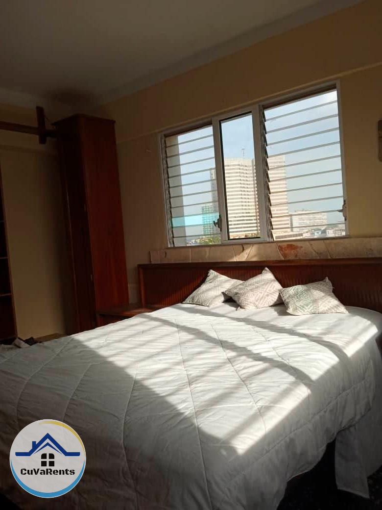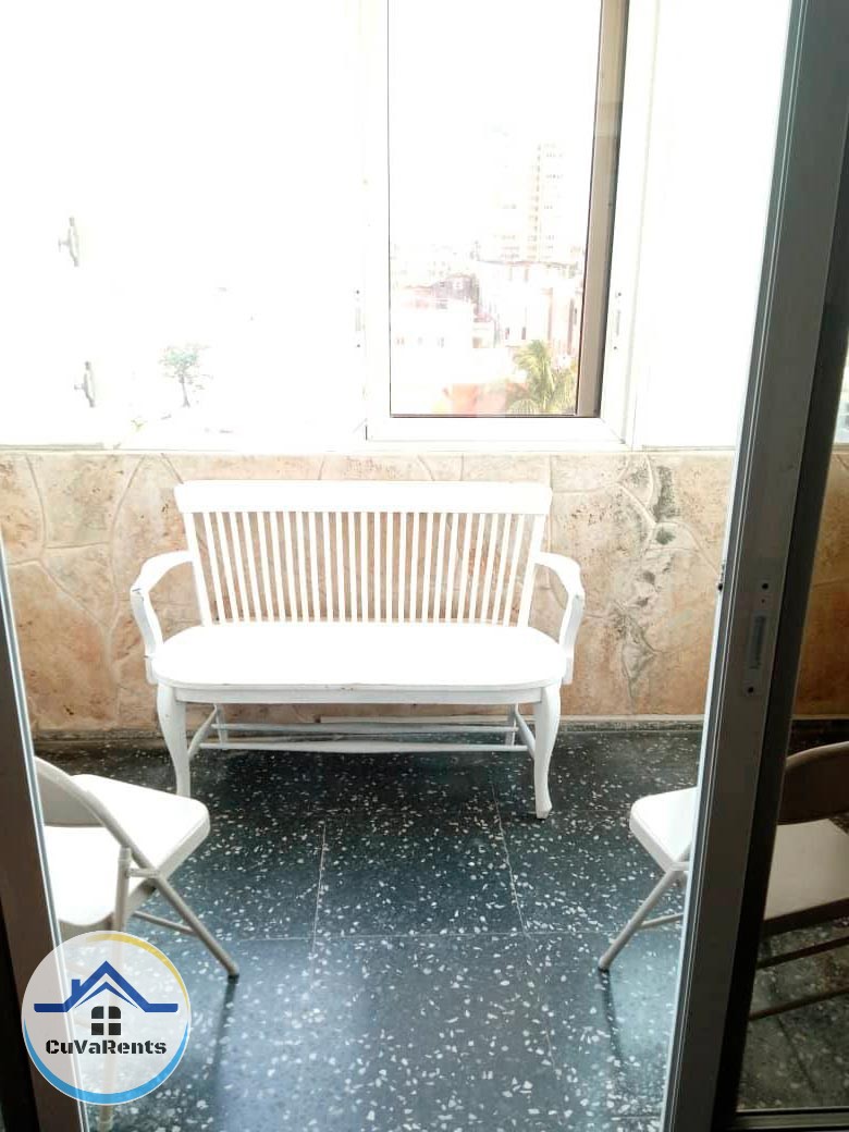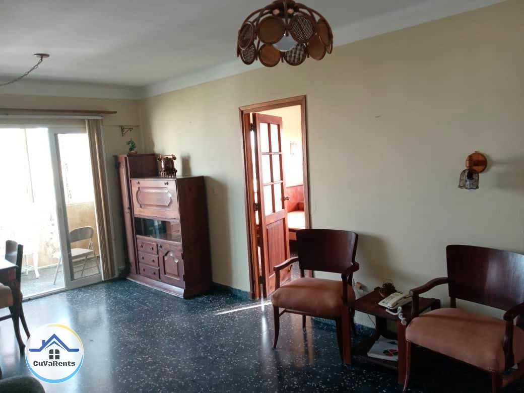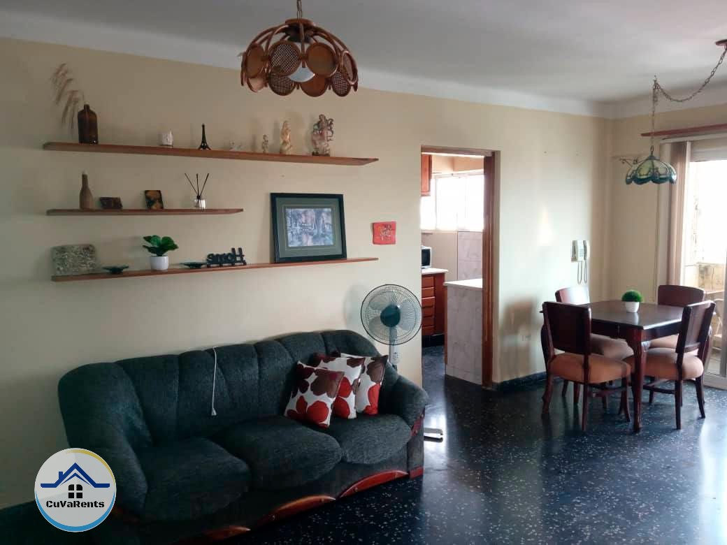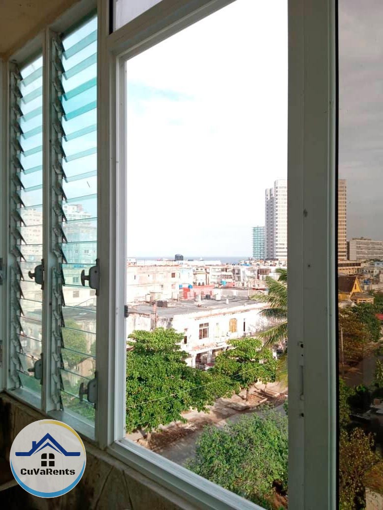 Alquiler por tiempo indefinido de Apartamento con dos habitaciones climatizadas con su baño; sala espaciosa, terraza, comedor y cocina con todos los utensilios necesarios. La propiedad se encuentra en un sexto piso con vistas al mar y la ciudad; el edificio cuenta con elevador.