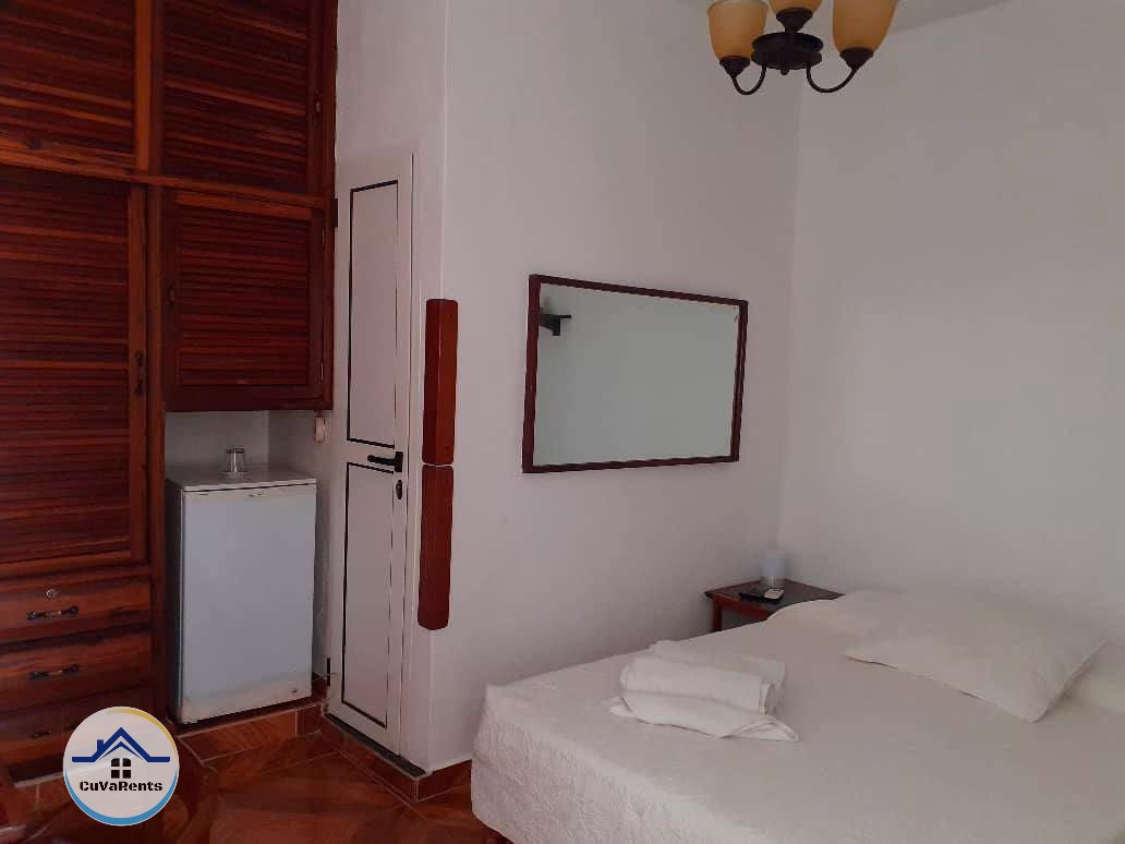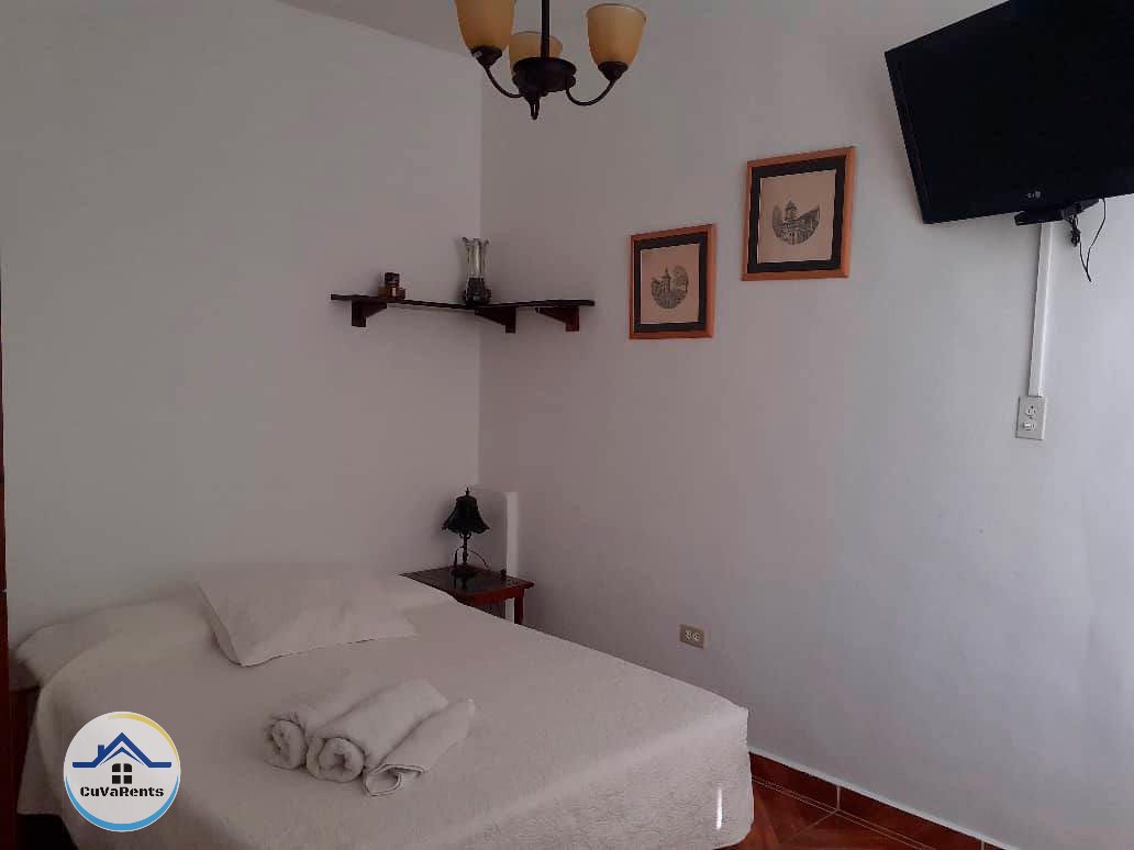 Apartamento de 2 habitaciones, cada una con su baño privado, aire acondicionado, minibar y agua fría y caliente. Cuenta además con sala - comedor y terraza. Está incluído el servicio de desayuno. Se ofrece también servicio de recogida en el aeropuerto bajo solicitud del cliente. Ubicado cerca de excelentes restaurantes y cafeterías, como punto de referencia podemos mencionar la famosa Fábrica de Arte Cubana