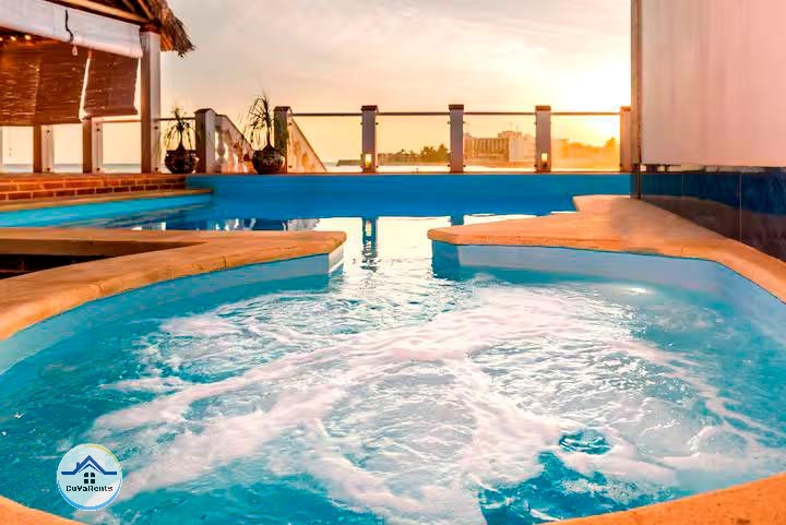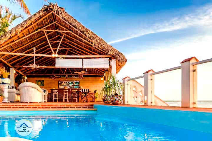 Propiedad con piscina, jacuzzi y 4 habitaciones climatizadas cada una con su baño privado. Cuenta con amplias terrazas, zona de descanso con tumbonas y hamacas, cocina totalmente equipada, bar y ranchón. Podrás disfrutar de vistas panorámicas del mar y tomar el sol junto a familiares y amigos.