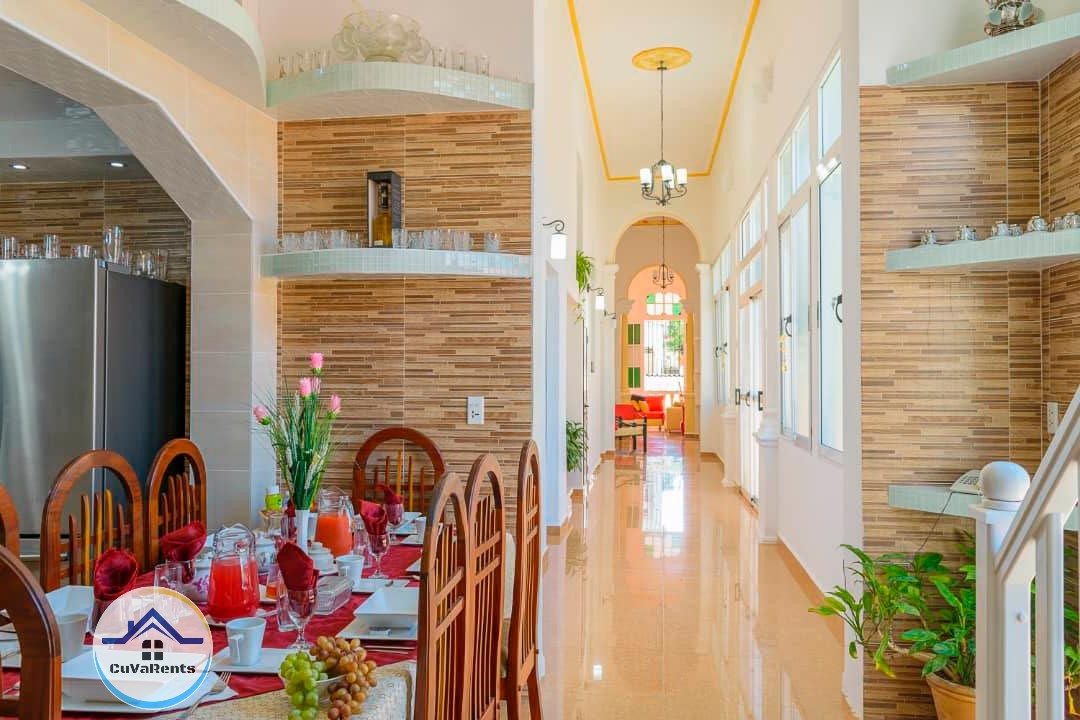 Alojamiento de cinco habitaciones climatizadas con su baño privado, minibar y caja fuerte. Los clientes tienen acceso a toda la casa; que consta de sala, comedor terraza y cocina la cual está equipada con todos los aditamentos.