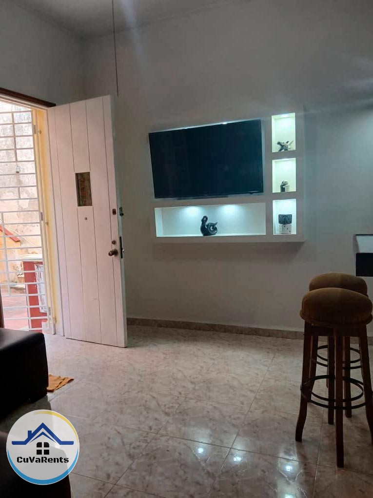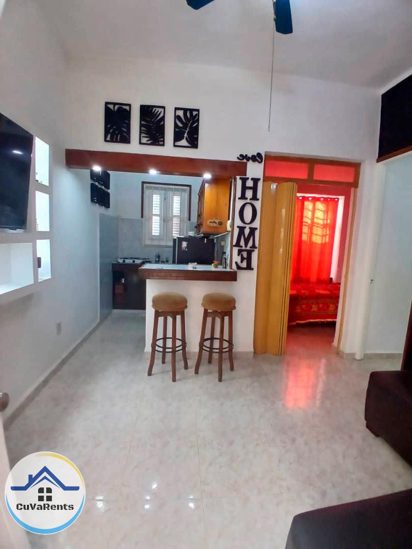 Moderno apartamento completamente climatizado con 2 habitaciones equipadas con clóset, baño con agua caliente, patio de servicio con lavadero, conexión Nauta Hogar, TV en cada cuarto, refrigerador y cocina equipada. Ideal para quienes buscan comodidad.