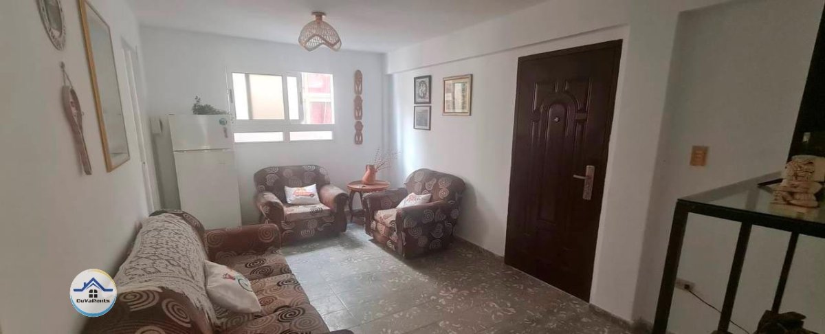 Renta de apartamento en el Vedado, La Habana, ubicado en la segunda planta de un edificio tranquilo de solo tres niveles. La propiedad cuenta con 1 dormitorio climatizado y medio cuarto adicional que puede habilitarse como habitación, además de sala-comedor amplia, cocina, baño y patio techado. Dispone de tanques de agua propios, presurizador y excelentes condiciones para una estancia cómoda, en una zona con múltiples servicios, cafeterías, mercados y negocios privados.