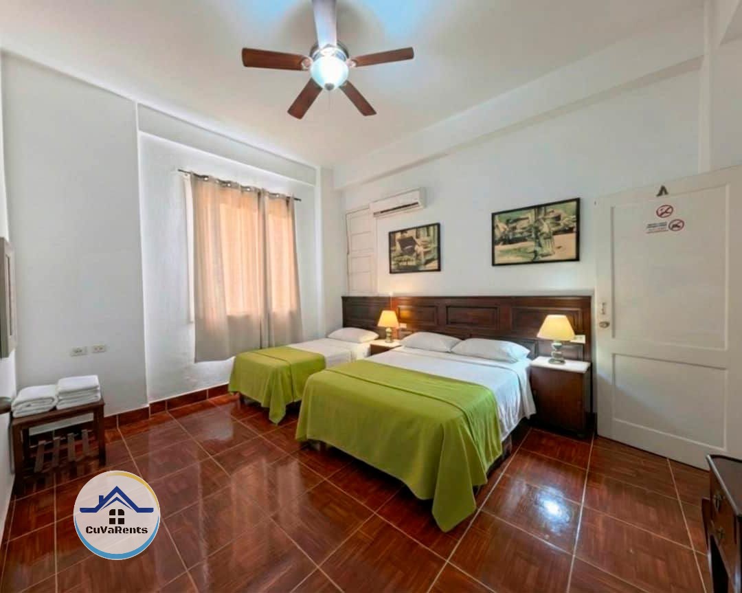 Renta de apartamento en La Habana Vieja, ubicado en un edificio con dos elevadores modernos, servicio eléctrico estable y parqueo vigilado 24 horas frente al inmueble, a solo una cuadra de la Embajada Española. La propiedad cuenta con 4 habitaciones —dos con dos camas y baño privado y dos más pequeñas con camas personales y un baño compartido—, además de sala, comedor, cocina equipada y balcón terraza con vistas al Museo de la Revolución, con capacidad total para 9 personas. Ofrece servicios adicionales como WiFi, desayunos, taxis y tours fotográficos, ideal para grupos que buscan comodidad y excelente ubicación en el centro histórico de La Habana.