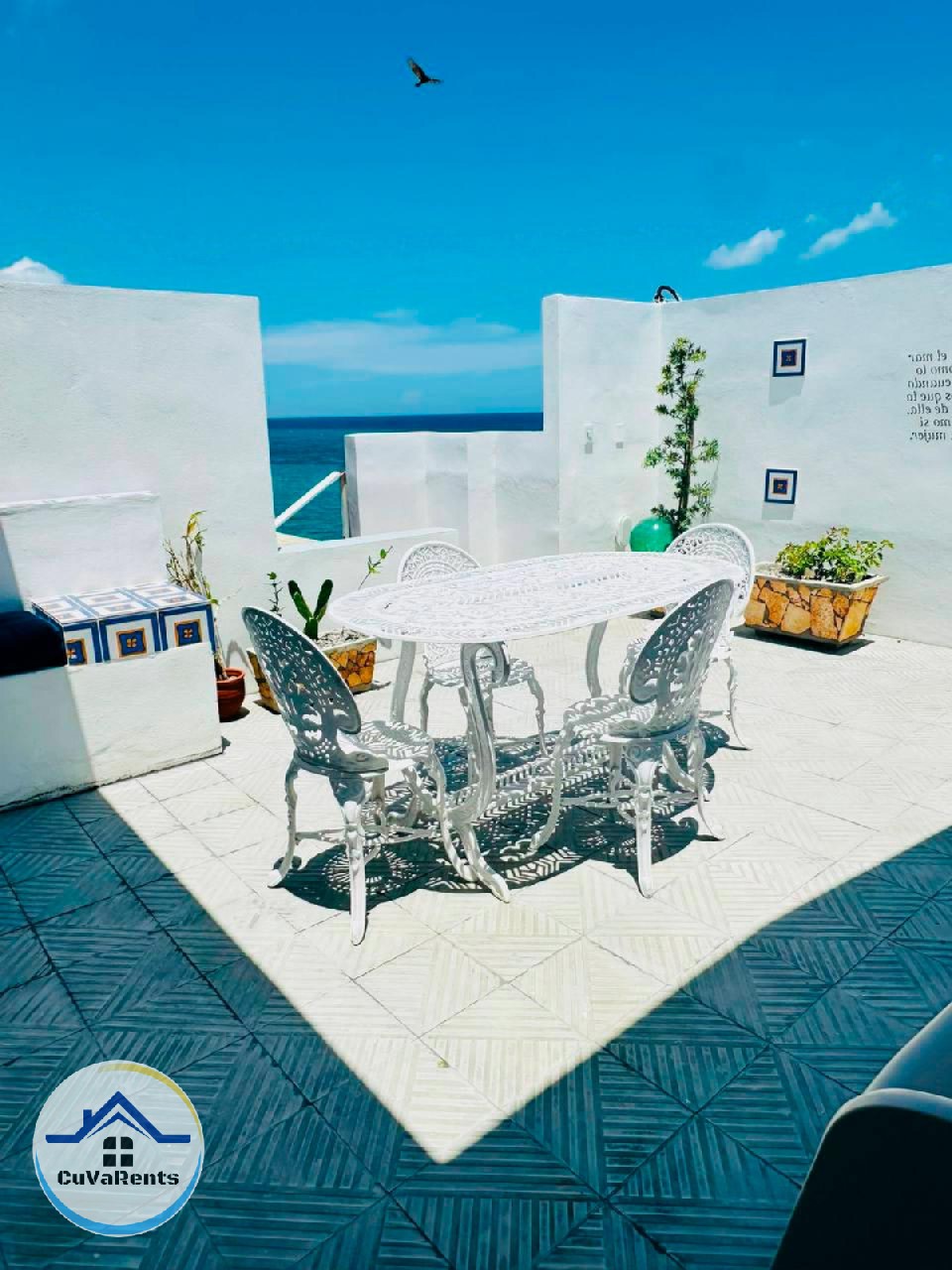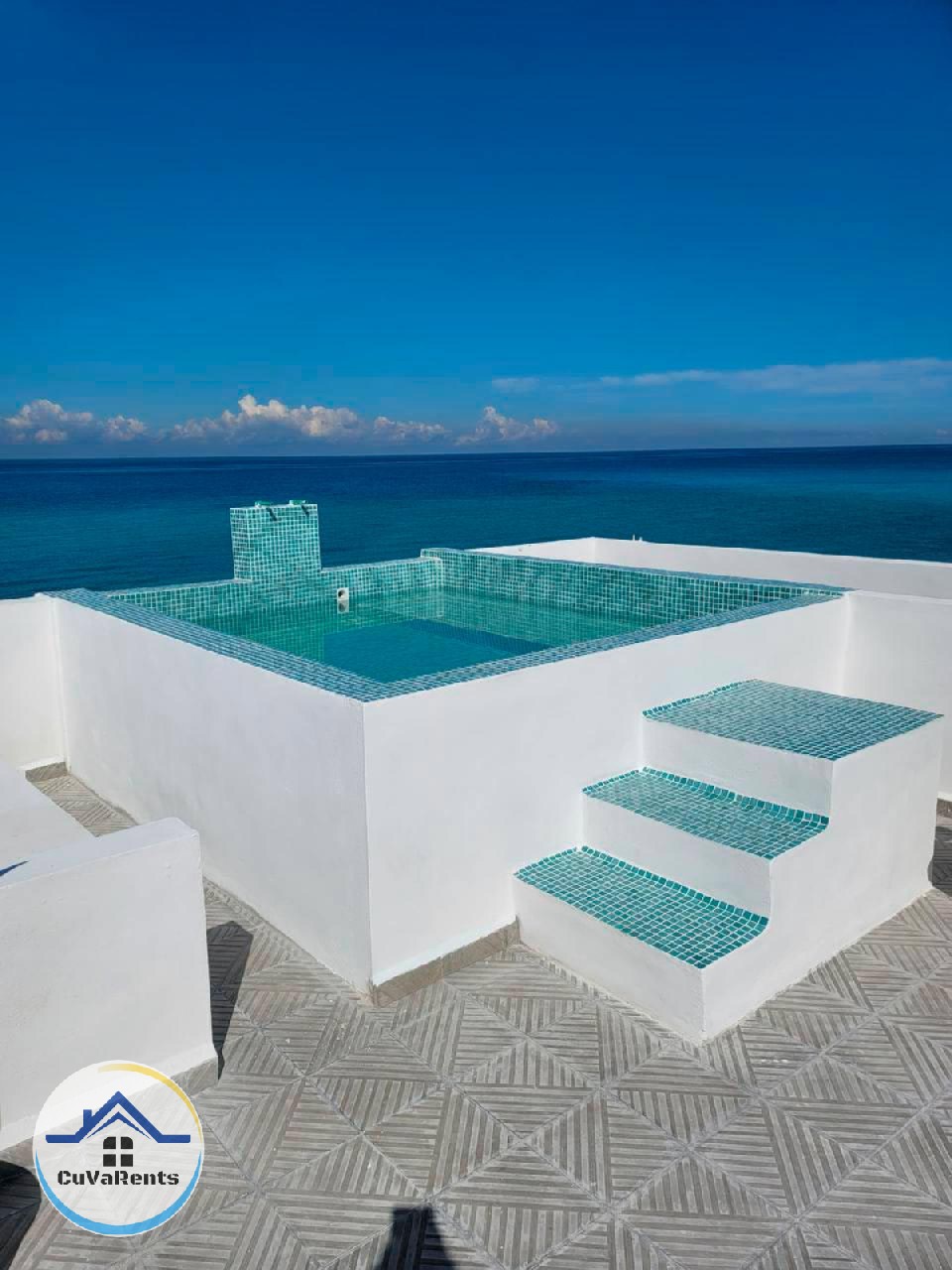 Renta de apartamento en Santa Fé, La Habana, con terraza privada y una espectacular vista panorámica al mar. El alojamiento cuenta con una pequeña piscina, dos habitaciones —una con cama King size y otra con dos camas personales—, sala amueblada con TV moderno y cocina totalmente equipada. Ideal para disfrutar de una estancia cómoda y relajante frente al mar, en una de las zonas más tranquilas de la capital cubana.