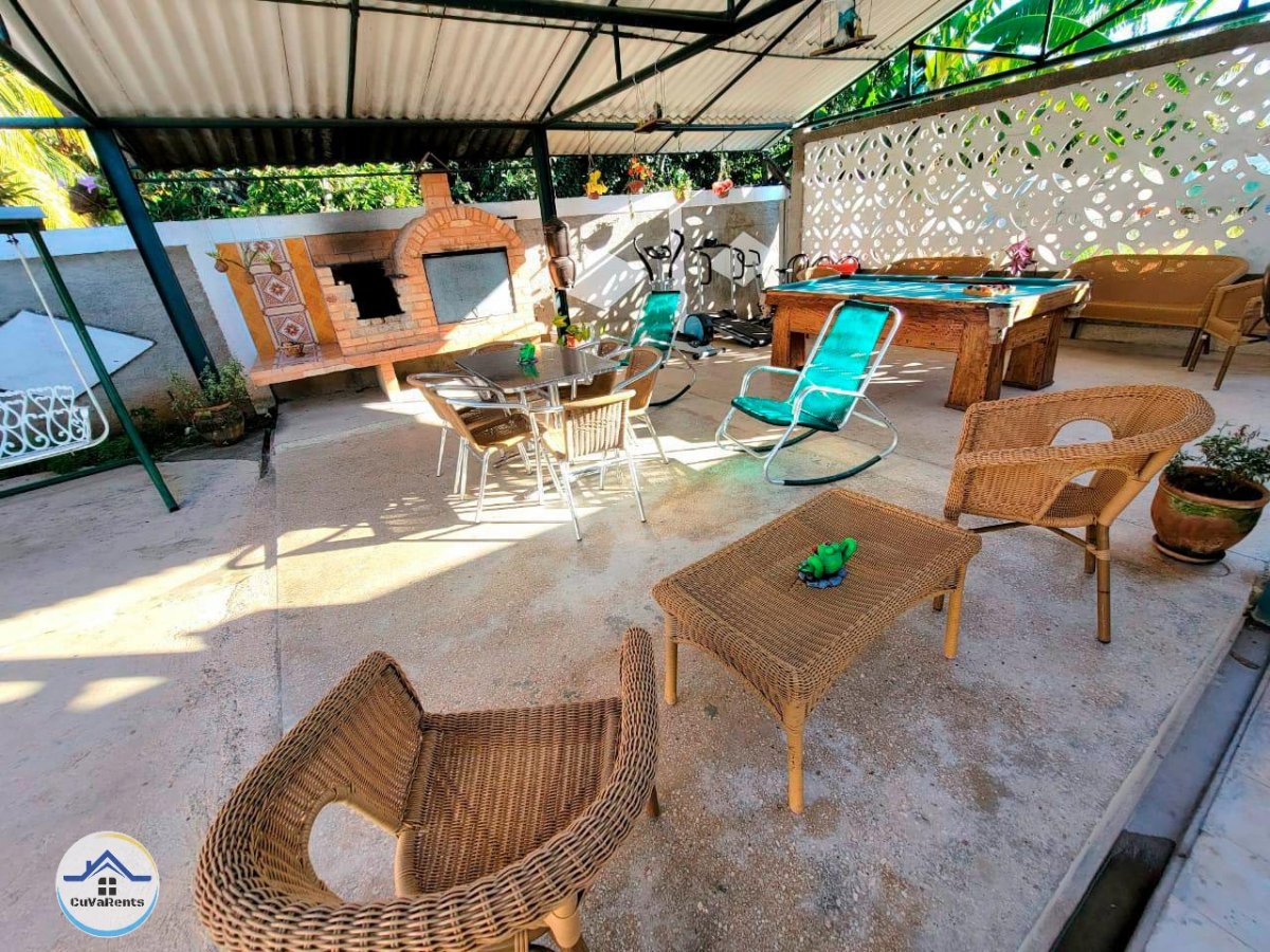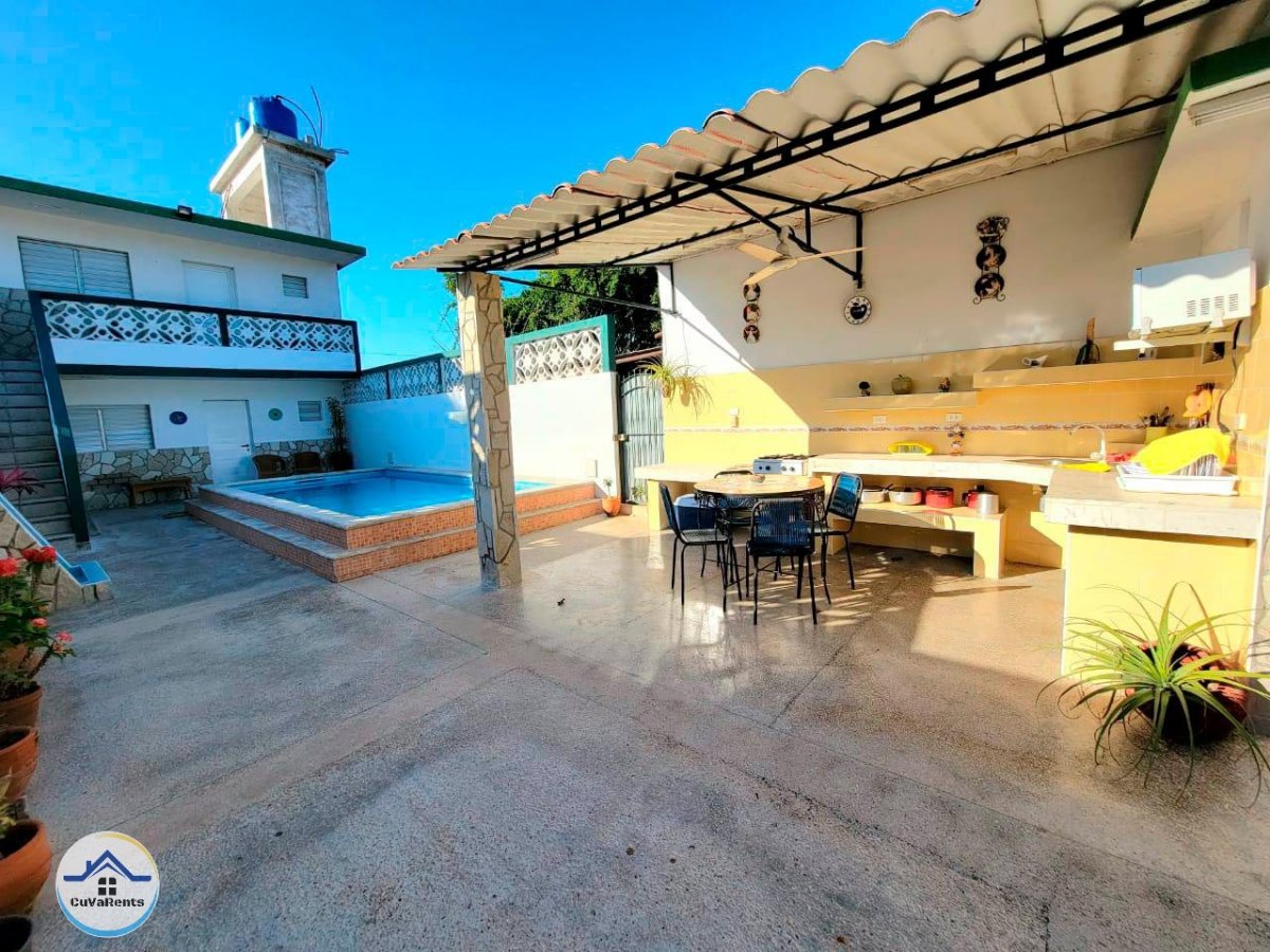 Disfruta de una casa independiente cerca de la playa con piscina privada, 4 habitaciones climatizadas con TV y caja fuerte, cocina totalmente equipada, bar junto a la piscina, amplia terraza y espacios perfectos para actividades familiares. Además, cuenta con agua fría y caliente en toda la casa y garaje privado. ¡Vive una experiencia inolvidable en la playa habanera!