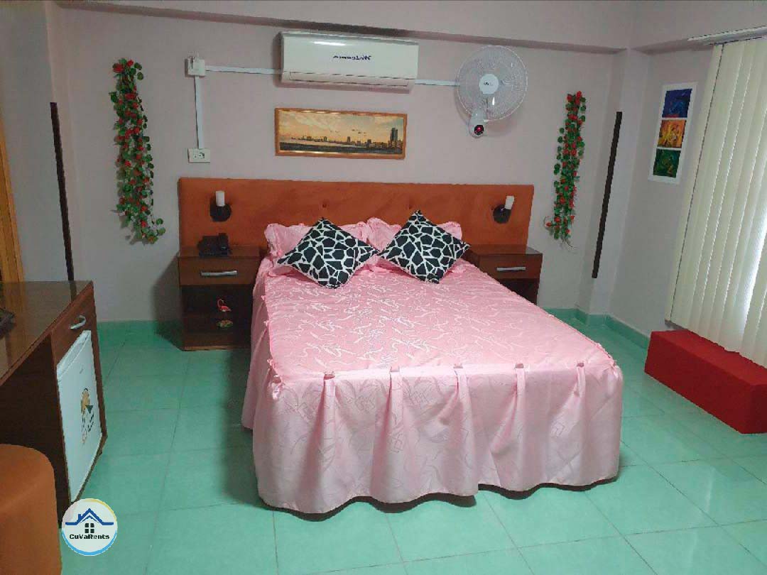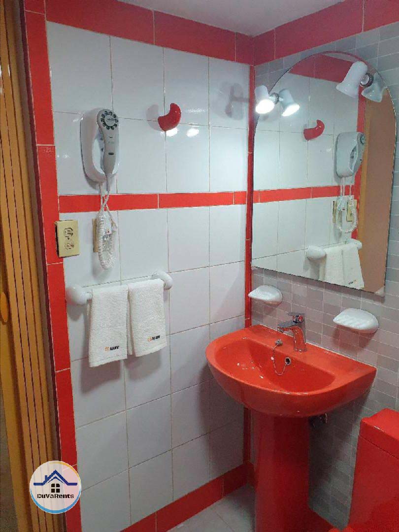 Renta de casa en el Vedado, La Habana, Cuba. Esta amplia propiedad ofrece varias opciones de alojamiento con 7 habitaciones confortables, adaptadas a las necesidades de cada huésped: 1 habitación estándar económica, 4 habitaciones estándar, 1 habitación estándar plus con baño moderno en blanco y negro, y 1 suite Balcony con vista exterior. Ideal para quienes buscan comodidad, privacidad y excelente ubicación en una de las zonas más céntricas y atractivas de La Habana.