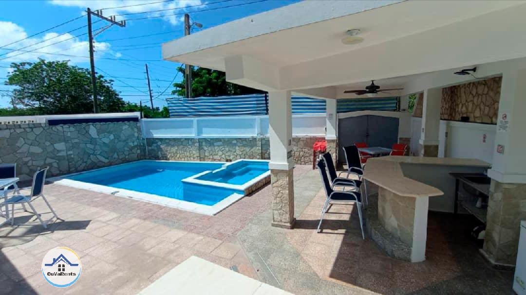 Renta de casa en Guanabo, La Habana, ubicada a solo 4 cuadras de la playa. La propiedad cuenta con 4 habitaciones climatizadas, capacidad para 12 personas, baños con agua fría y caliente, cocina totalmente equipada, áreas techadas, horno para asar, piscina con sistema de recirculación y luces, jacuzzi, parqueo y planta eléctrica. Ideal para disfrutar en familia con todas las comodidades.