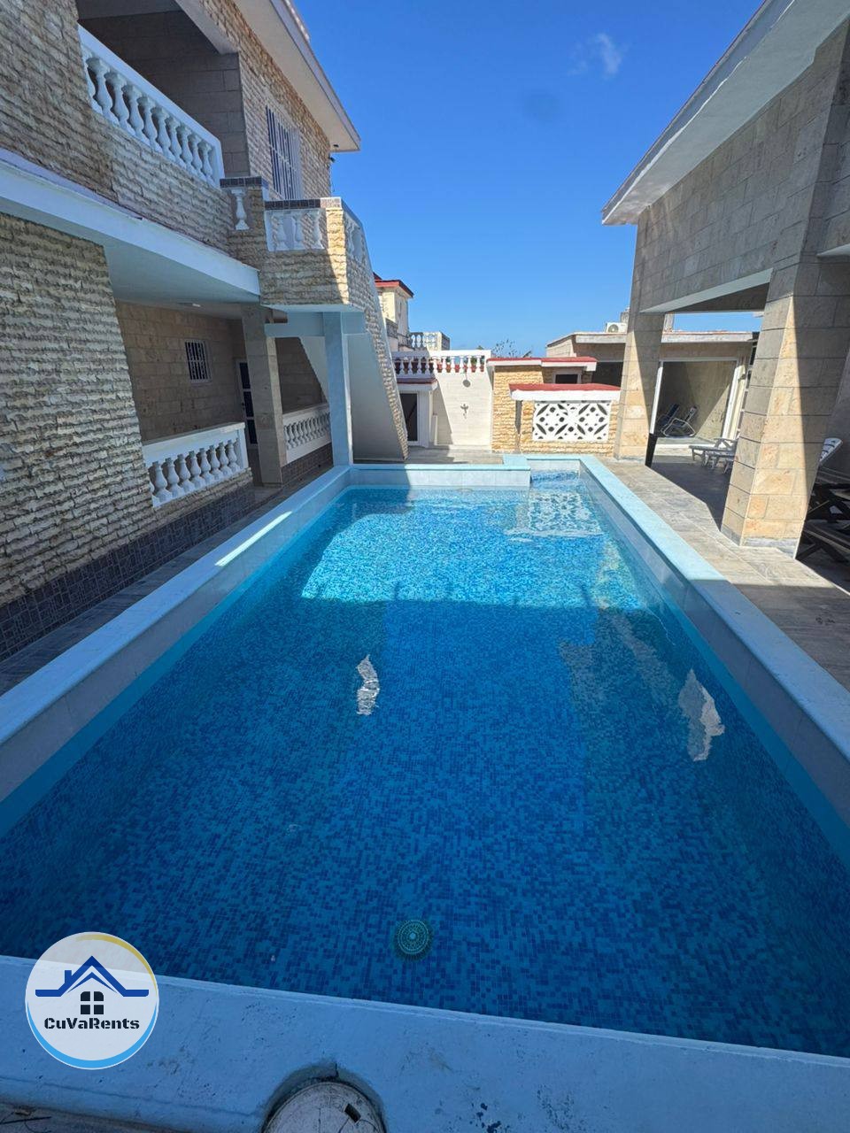 Renta de casa en Guanabo, Playas del Este, La Habana, ubicada a solo 5 calles de la playa, ideal para grupos grandes. La propiedad cuenta con piscina, 7 habitaciones con capacidad total para 15 personas y área de billar, ofreciendo un espacio amplio y confortable para disfrutar de unas vacaciones cerca del mar con familia o amigos.