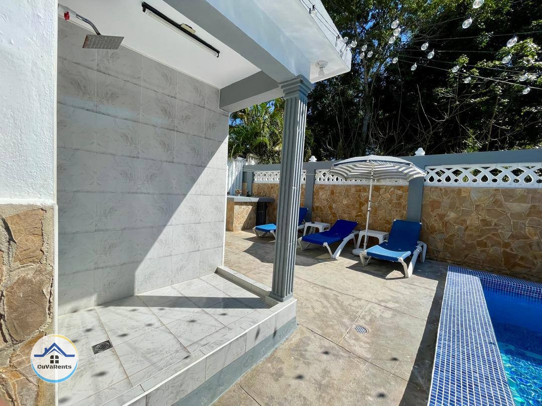 Renta de casa en la playa de Boca Ciega, La Habana, ideal para disfrutar de unas vacaciones cómodas y cerca del mar. La propiedad cuenta con piscina, 3 habitaciones —una con baño privado y dos que comparten un baño intercalado—, mesa de billar, cocina bien equipada y todas las comodidades necesarias para garantizar una estancia placentera en familia o con amigos.
