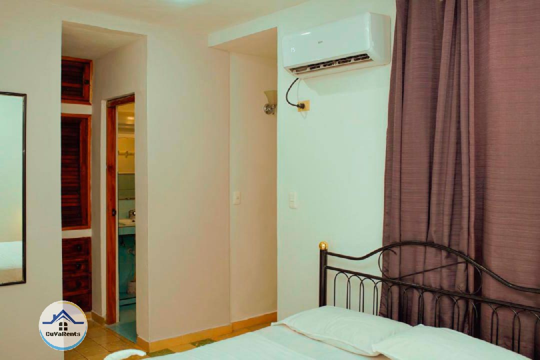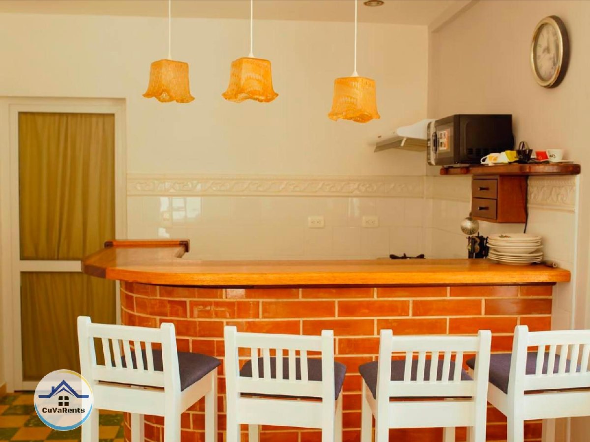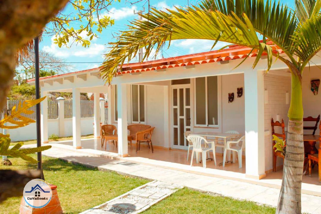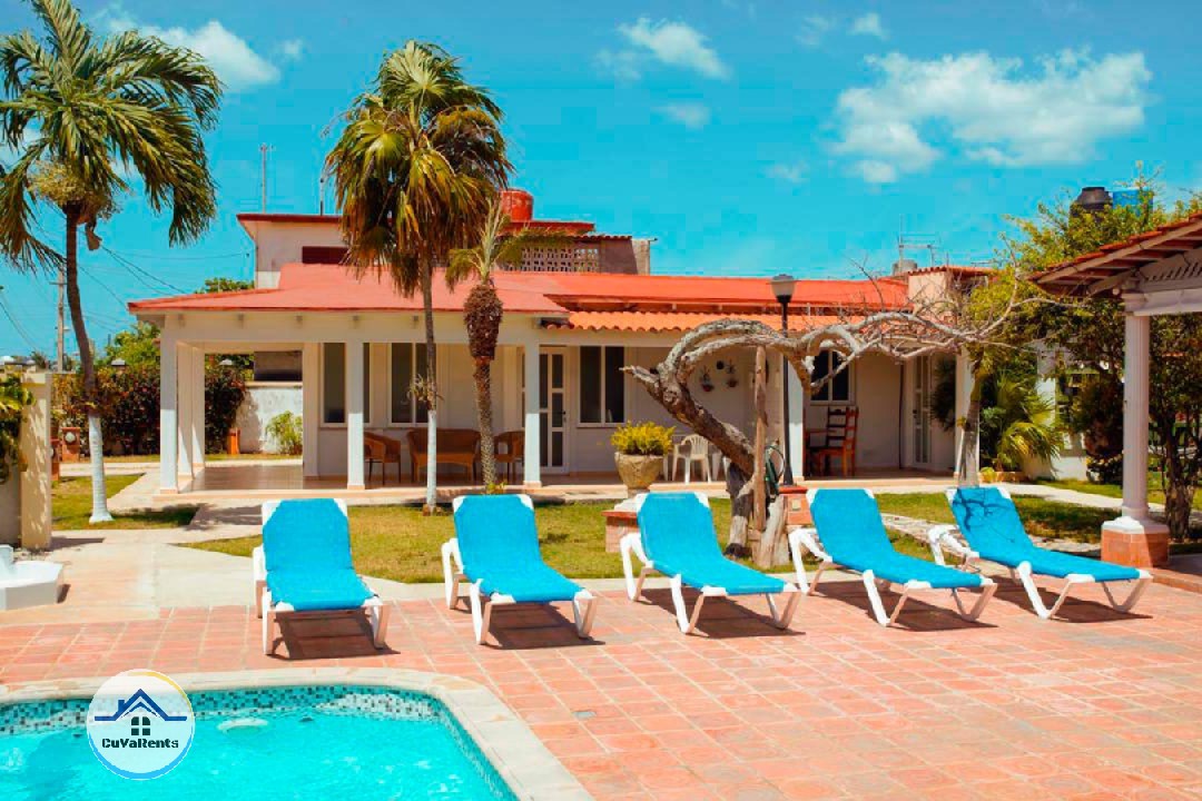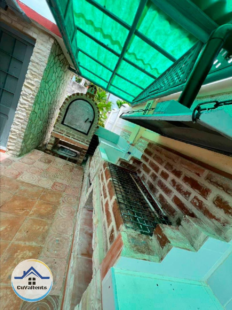 Renta de casa en Guanabo, La Habana, ubicada a solo 4 cuadras de la playa, con 4 habitaciones climatizadas y capacidad para 12 personas. La propiedad cuenta con piscina iluminada, jacuzzi, cocina equipada, áreas techadas, horno para asar, parrilla de carbón, planta eléctrica y parqueo privado, ideal para vacaciones en familia o grupos que buscan confort y tranquilidad cerca del mar en Cuba.