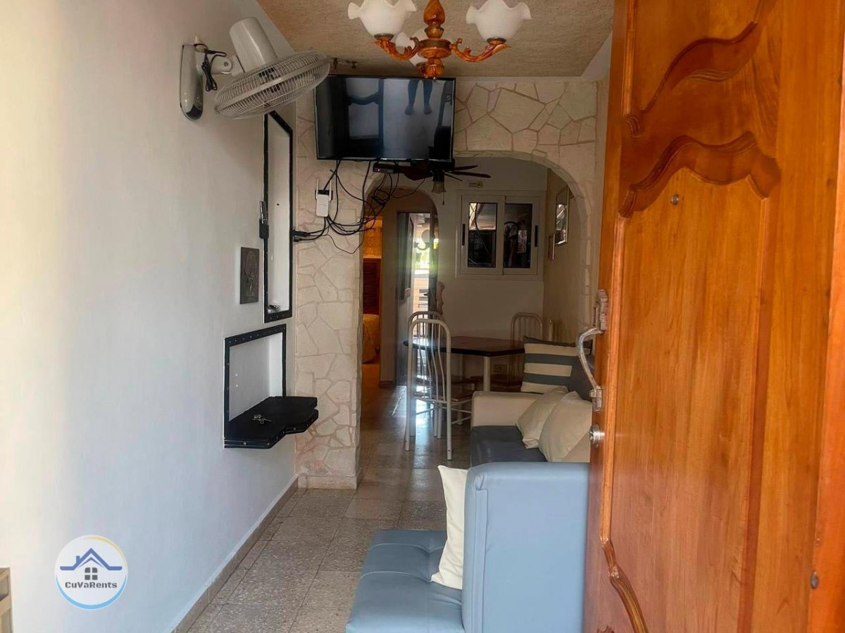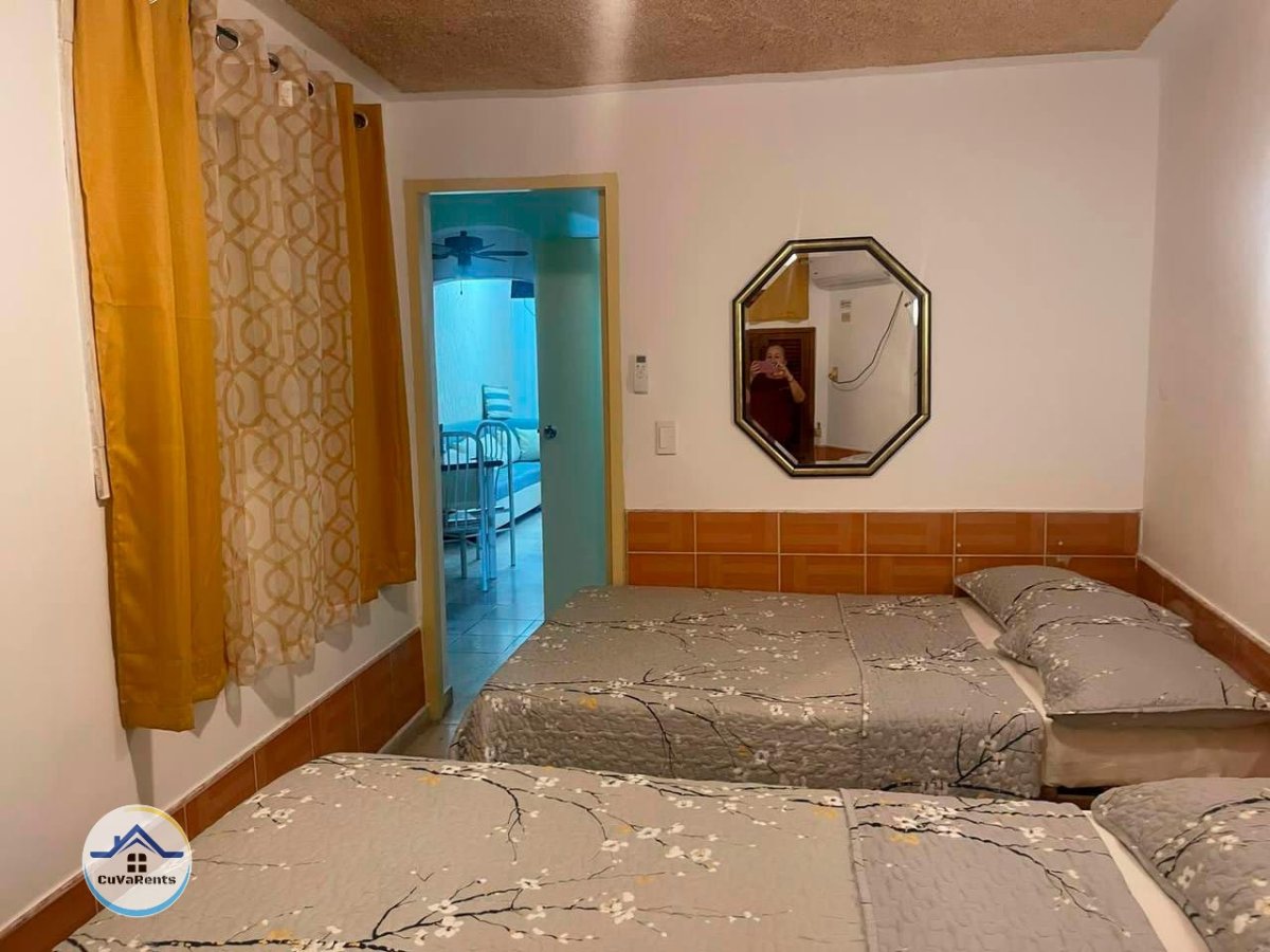 Renta de casa en la playa de Varadero, Cuba, ideal para quienes buscan comodidad, privacidad y un ambiente caribeño a pocos pasos del mar. La propiedad cuenta con portal de acceso, sala pequeña, dos habitaciones climatizadas con capacidad para alojar hasta seis personas en tres camas, comedor y cocina completamente equipada con refrigerador de gran tamaño. Dispone de un baño, pasillo lateral que conduce a la terraza trasera con lavadero y ducha de playa, así como un espacio exterior con juego de terraza y zona soleada perfecta para secar toallas y ropa. Todo el perímetro está cercado y enrejado, garantizando intimidad y confort durante su estancia.