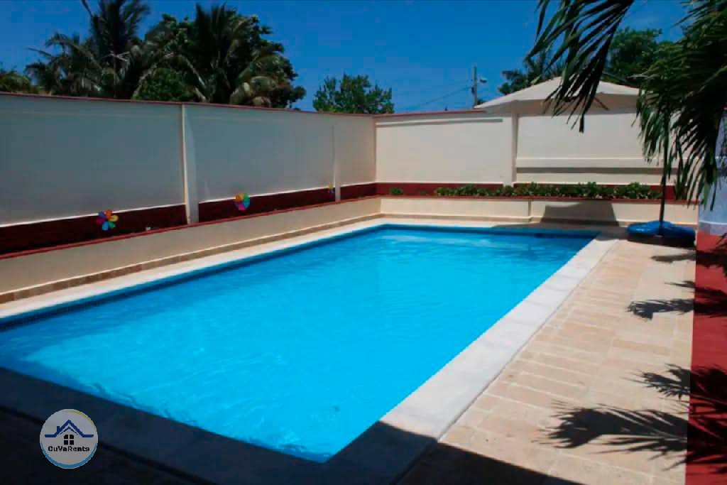Renta de casa en Brisas del Mar, La Habana, a solo una cuadra y media de la playa, con dos opciones de alojamiento: una casa de 5 habitaciones con capacidad para 10 a 12 personas y otra de 7 habitaciones con capacidad para 14 a 16 personas. Ambas propiedades ofrecen magnífico confort, aire central y habitaciones climatizadas, cada una equipada con TV, minibar, ventilador y colchas de calidad. Disponen además de piscina de 8x4 metros con recirculación las 24 horas, cocina exterior, parrilla de carbón y agua totalmente potable, ideales para familias o grupos grandes que deseen disfrutar de una estancia cómoda y exclusiva cerca del mar.