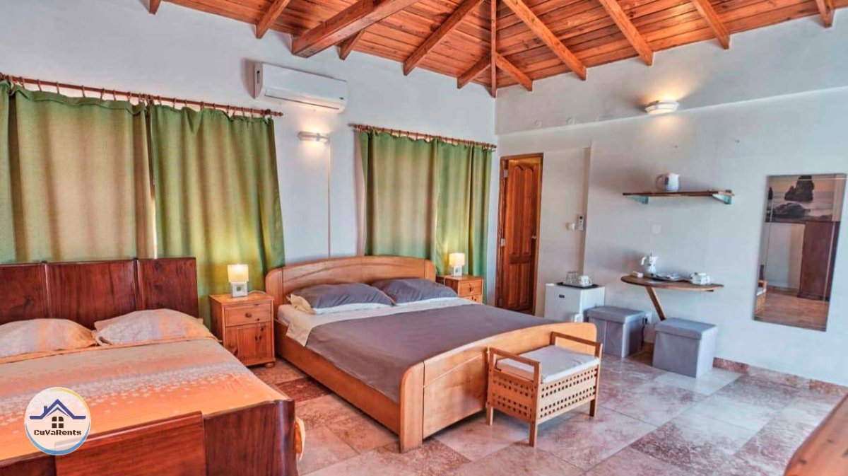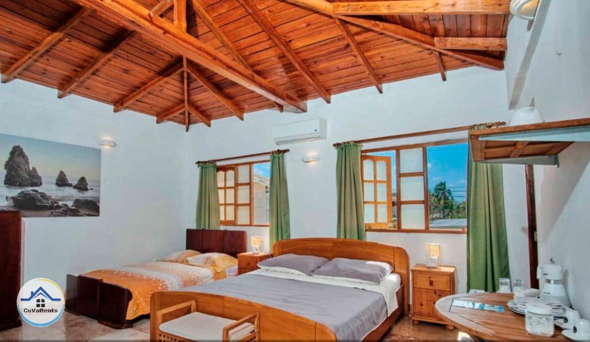 Renta de casa frente al mar en Santa Fé, La Habana, con opciones flexibles de alquiler por partes o la propiedad completa. Dispone de tres modalidades: una casa de 2 habitaciones con sala climatizada, comedor, cocina equipada con horno y lavavajillas, terraza techada frente al mar y baños privados; una casa de 2 plantas con sala, cocina, terraza frente al mar y dos dormitorios (uno triple y uno doble) con baños y balcón; y una habitación independiente en planta alta con baño y terraza con vista al mar, con capacidad para 4 personas. Todas las habitaciones cuentan con aire acondicionado y caja de seguridad, y la propiedad incluye planta eléctrica que garantiza el funcionamiento general, ideal para disfrutar de una estancia cómoda y con vistas privilegiadas al mar.